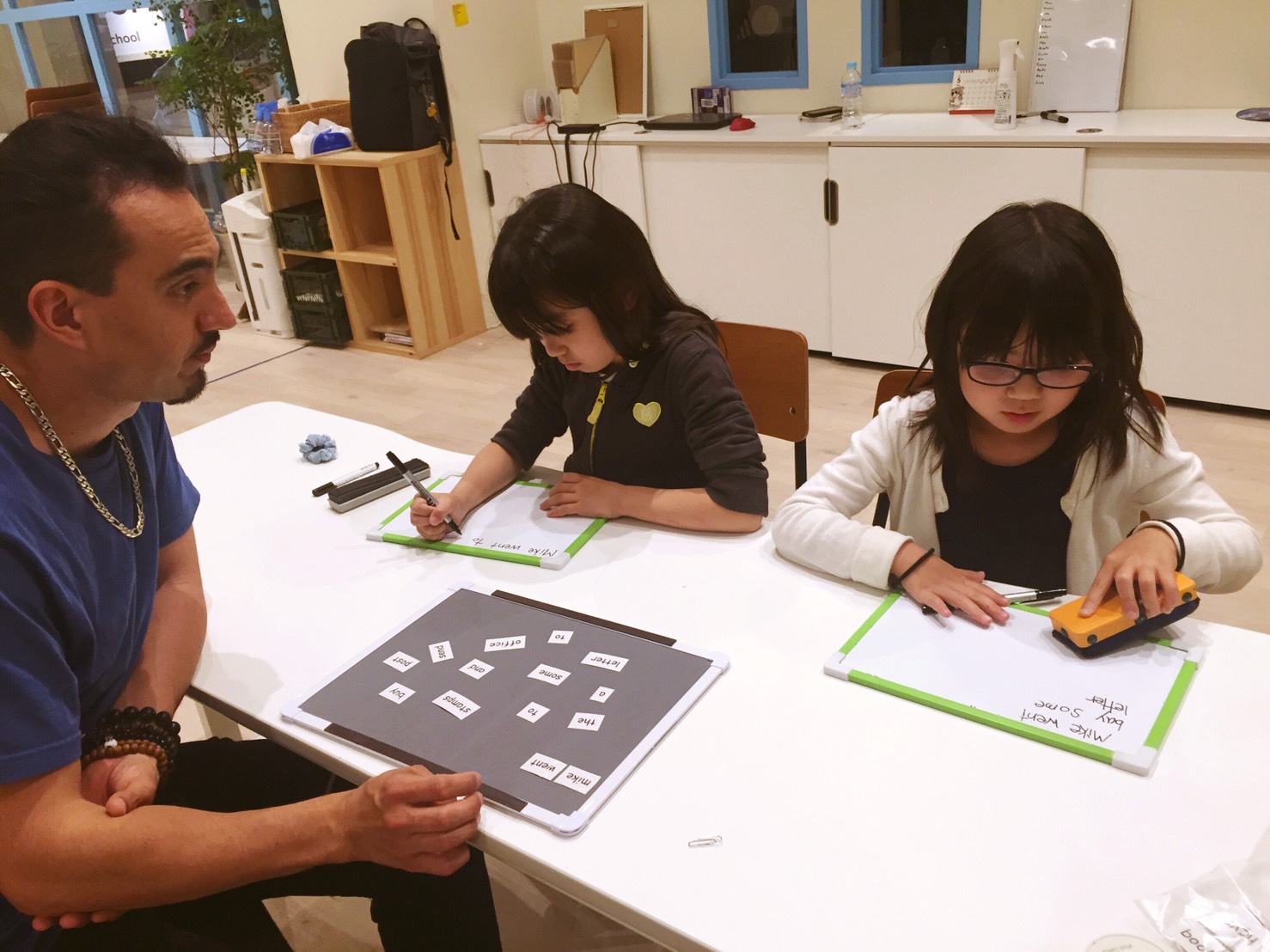 その他にも、工作やナイトコースは単語を文法通り正しく整列させる問題の練習を行いました。