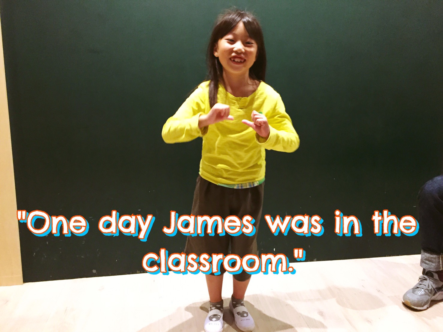 “One day James was in the classroom.” (ある日、ジェームスは教室にいました)
