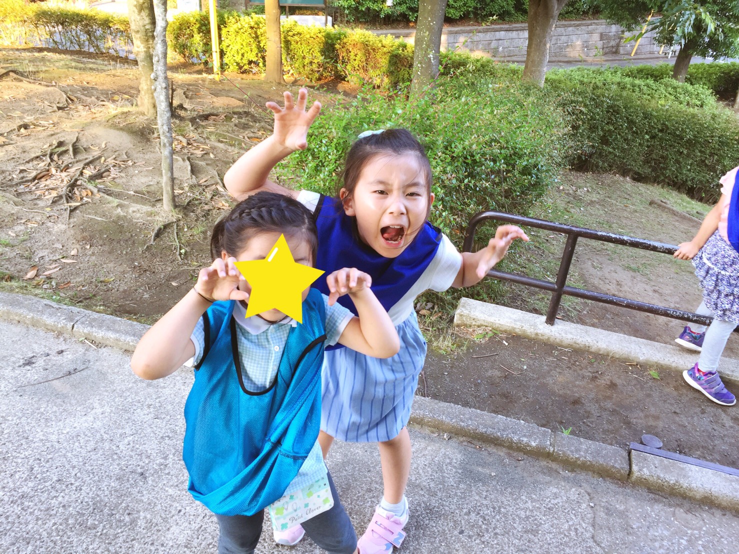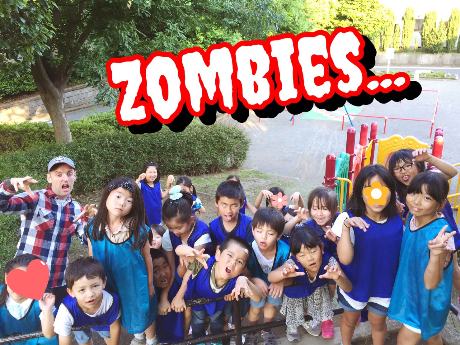 外遊びでは、なぜかゾンビポーズが流行っていました!