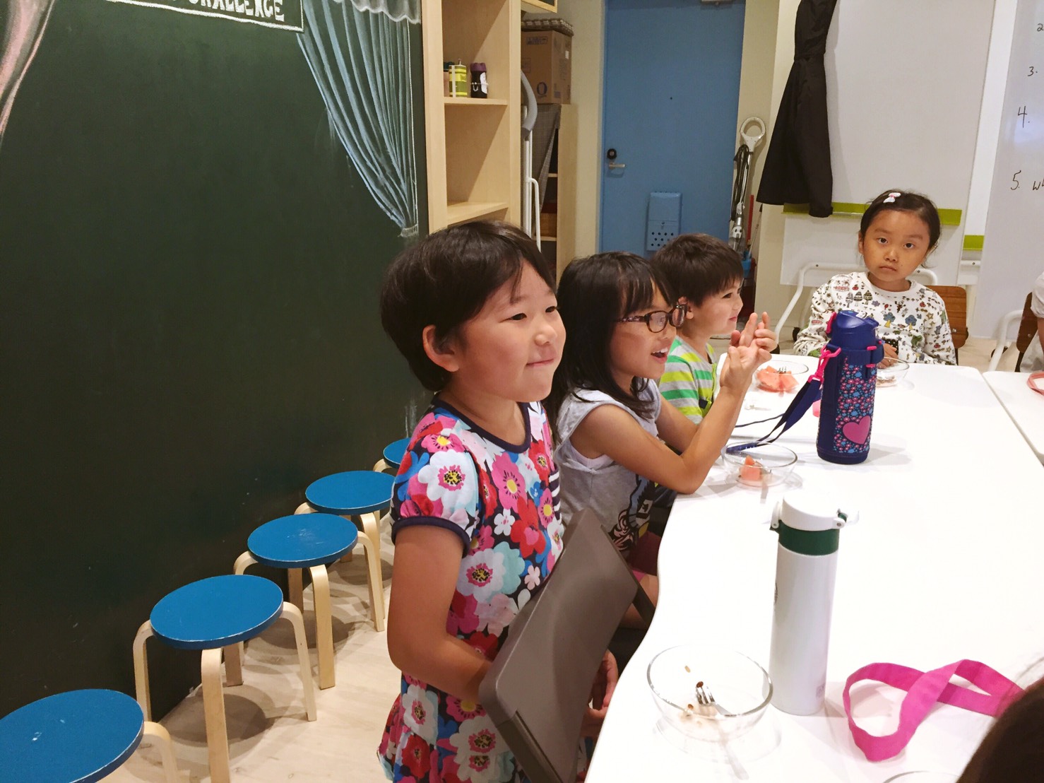 先週から行なっている、質疑応答ゲームでは、最後まで答えられるようになる生徒さんもチラホラとでてきました!クリアーするともらえるビクトリーポイントを貯めて、ご褒美をゲットしようとみんな必死です。