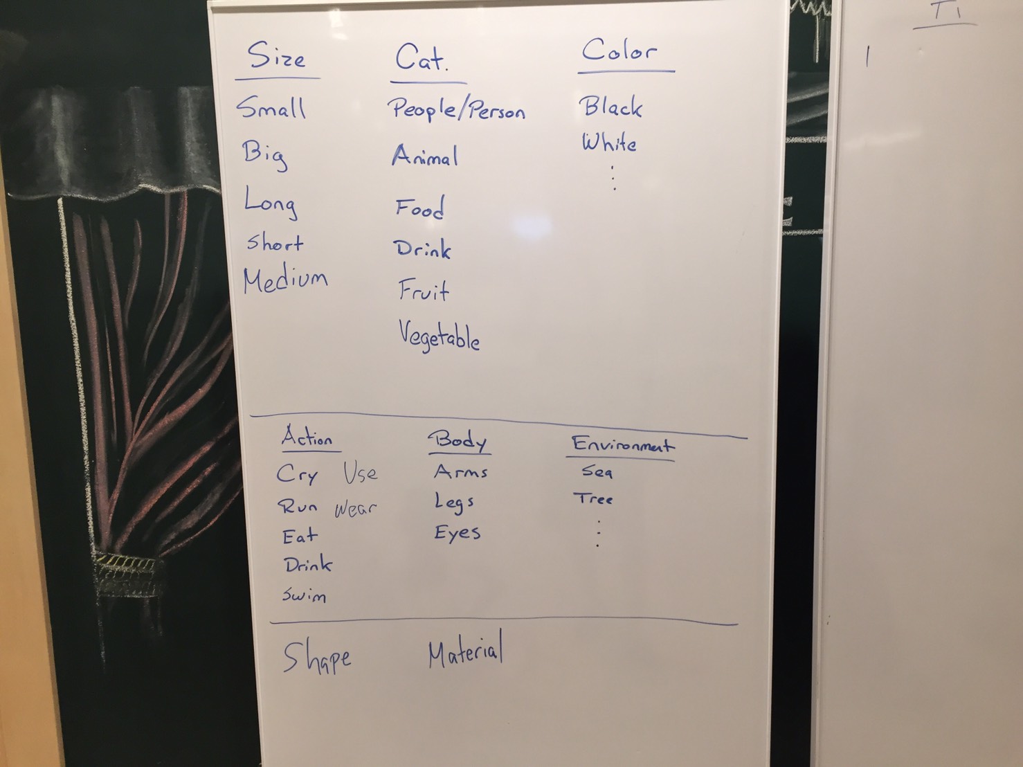 今日のナイトコースは、英語版の連想ゲームをやりました。各チームから一人ずつが前に出て、お題に関連する単語を次々に伝えて行きます。
