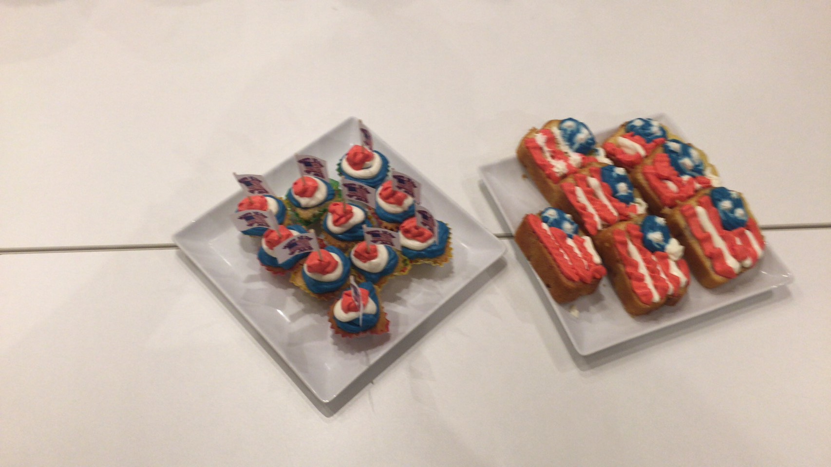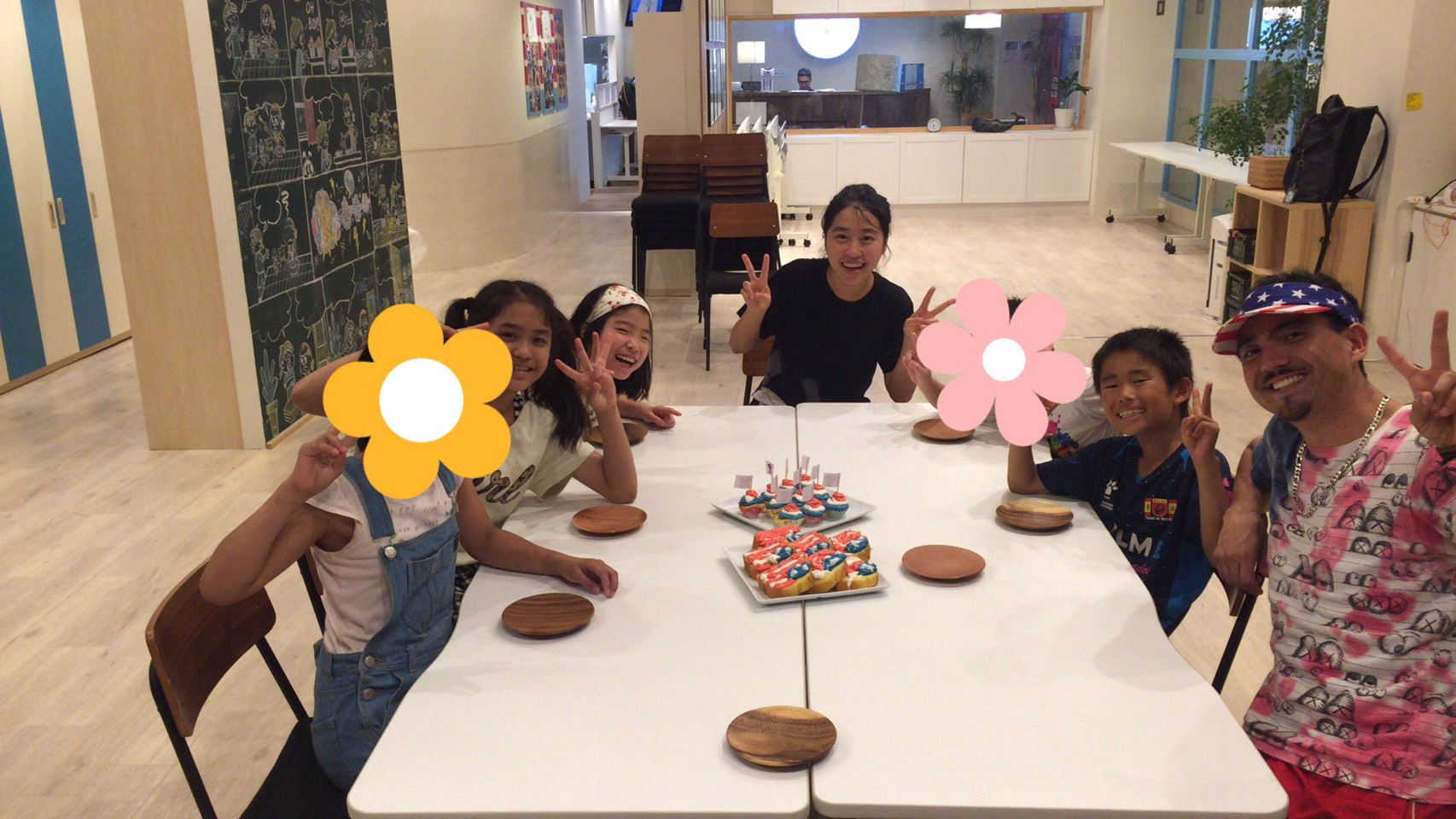 その後は、キャスパー先生が作ってきてくれたアメリカンフラッグのケーキをみんなで食べました!