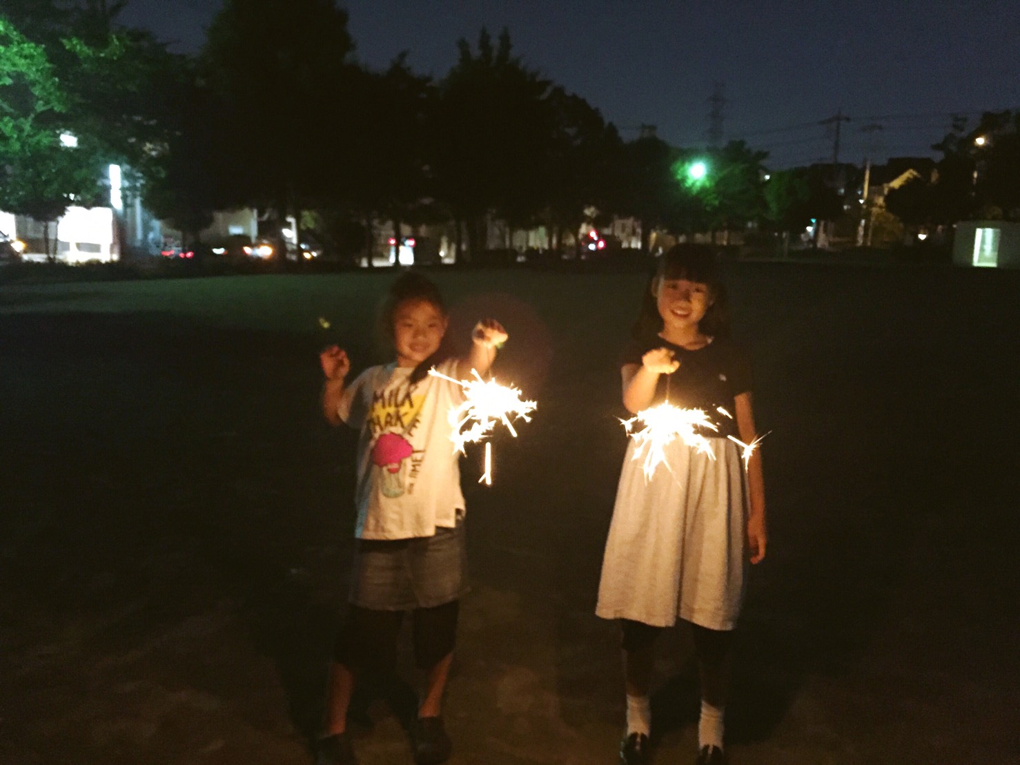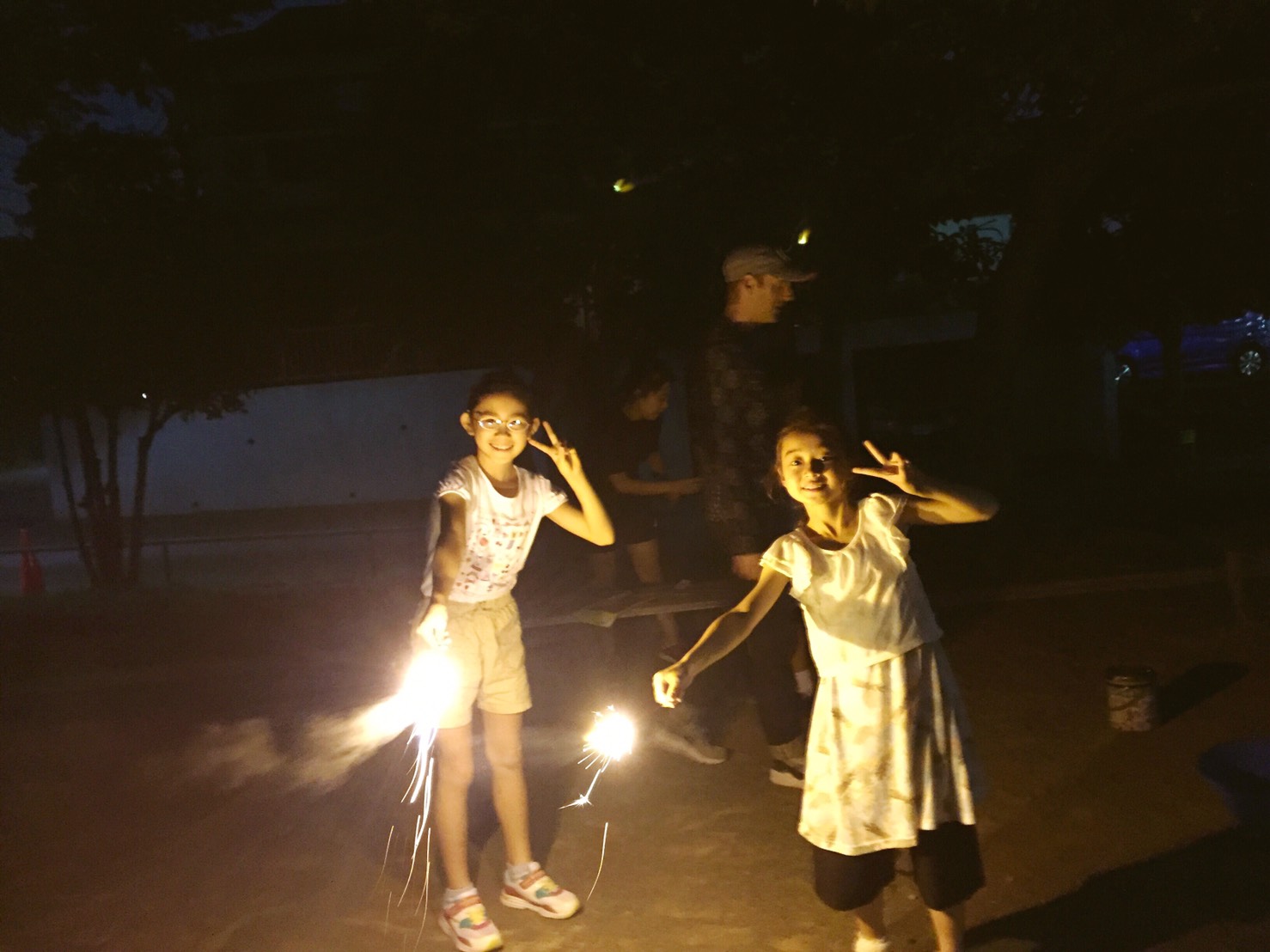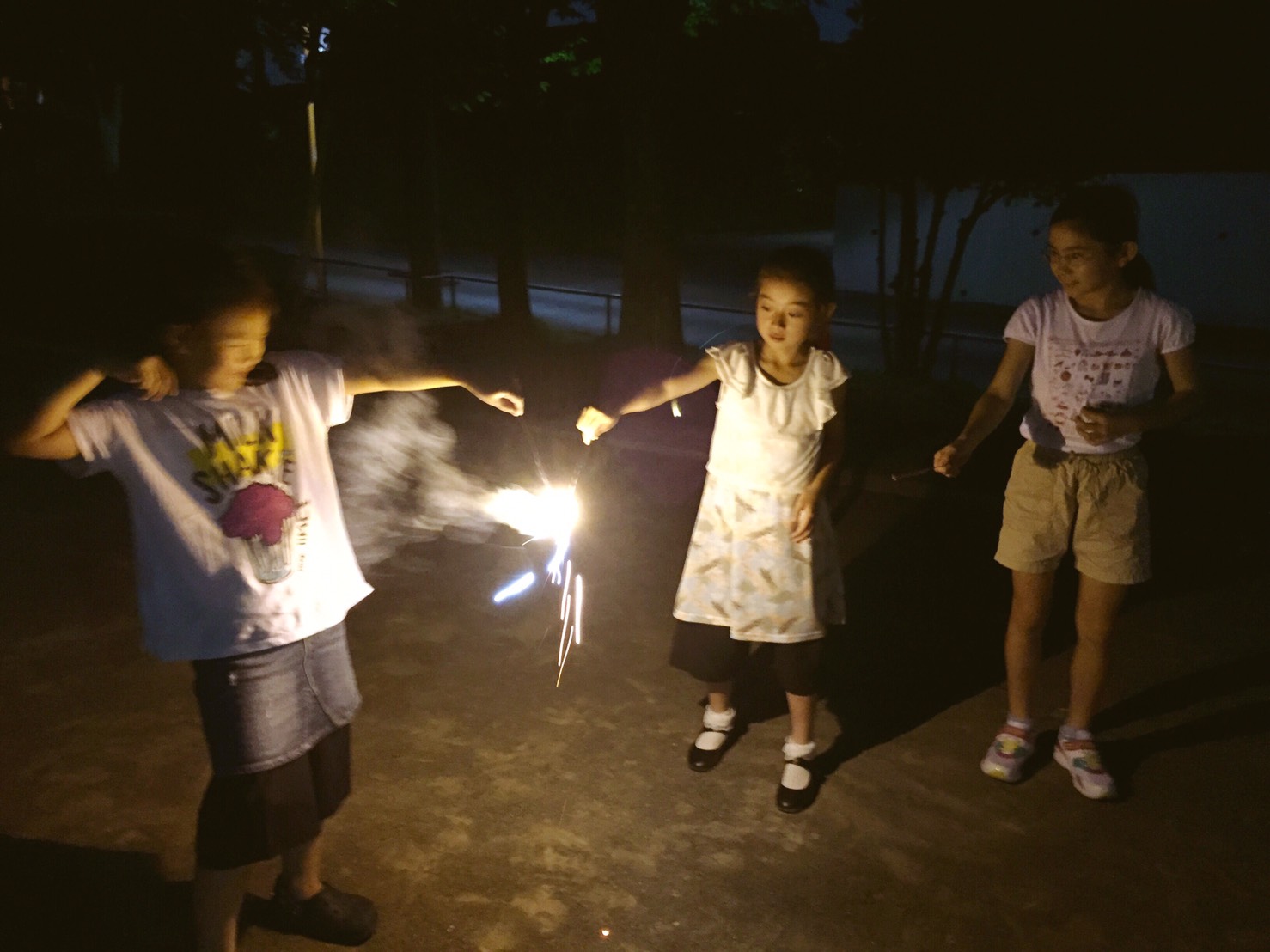ナイトコースでは、7月4日の独立記念日を思い出しながら、外で花火パーティーでした!