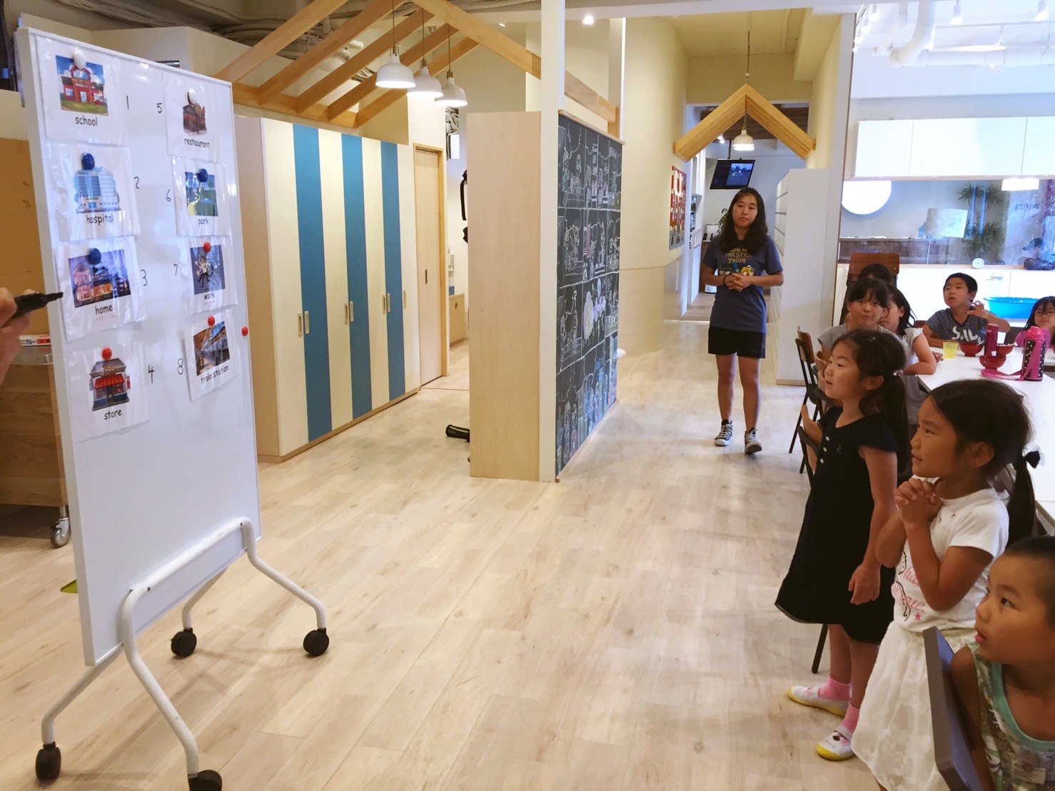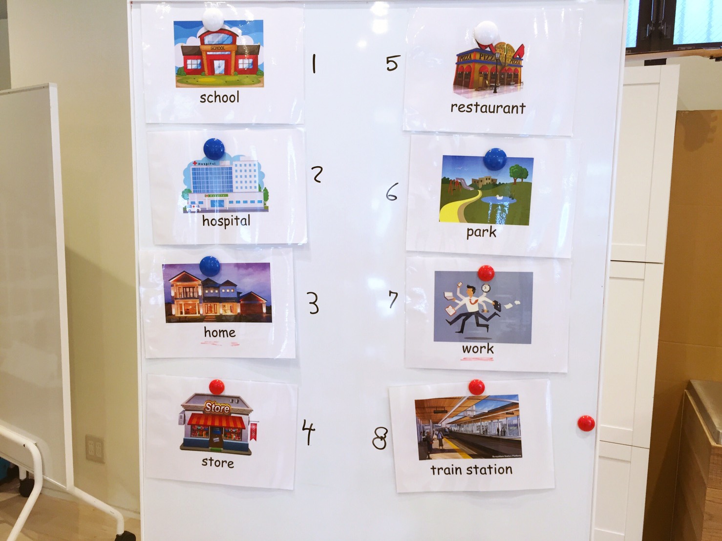 今日も暑さに負けずみんな元気に登校してくれました!宿題を終わらせて、スナックタイムには新しく加わった場所の単語の練習です。
