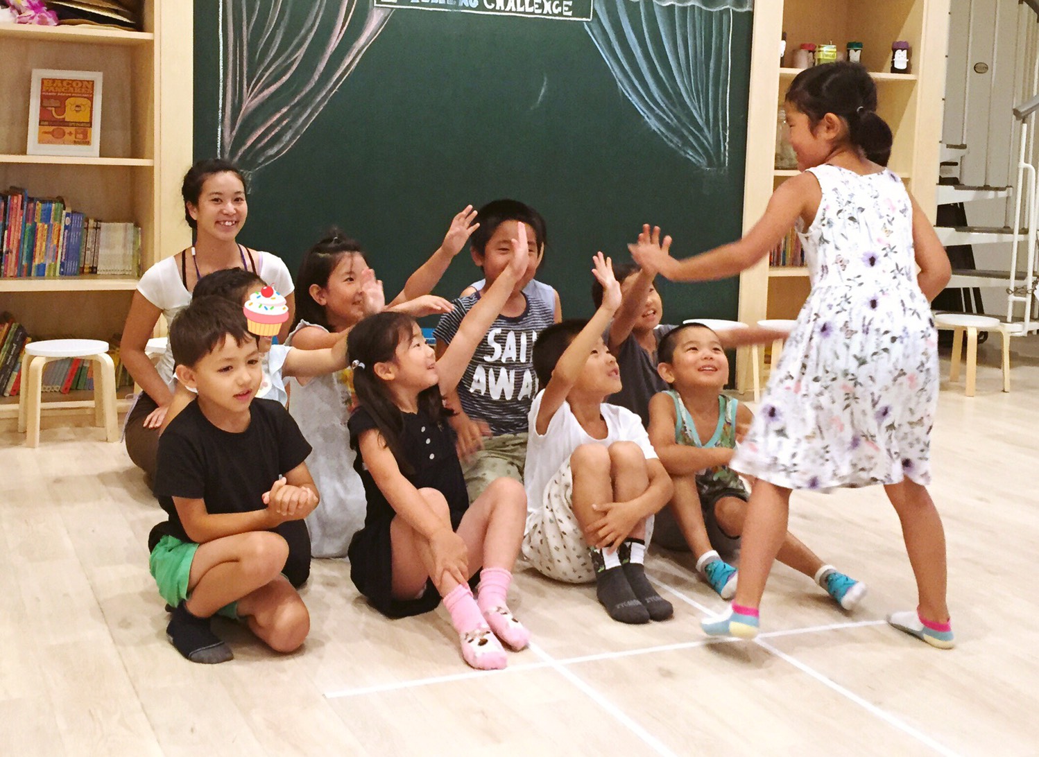 新しい生徒さんも増え、そろそろみんなお友達の名前も覚えてきたかな?今日は名前当てクイズを行いました。2グループにわかれひとりづつ前にでてきます。