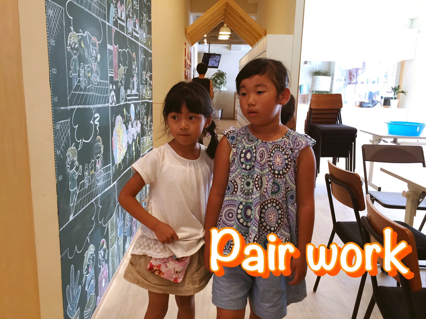 今週のテーマの単語を、二人一組のペアになっていかに早く二人が答えられるか?みんなで競い合いました。ペアになった生徒さん同士で一生懸命練習していました。