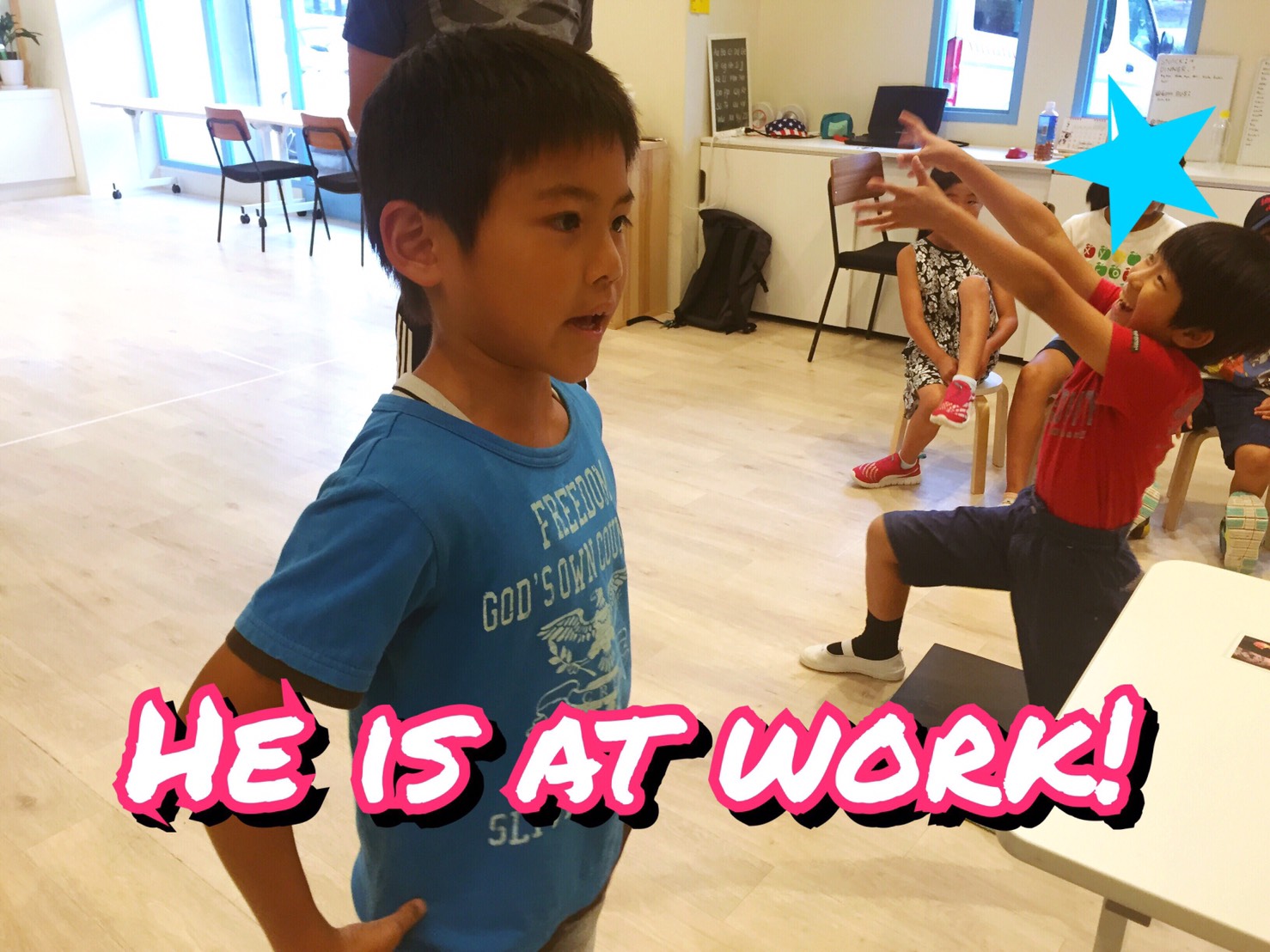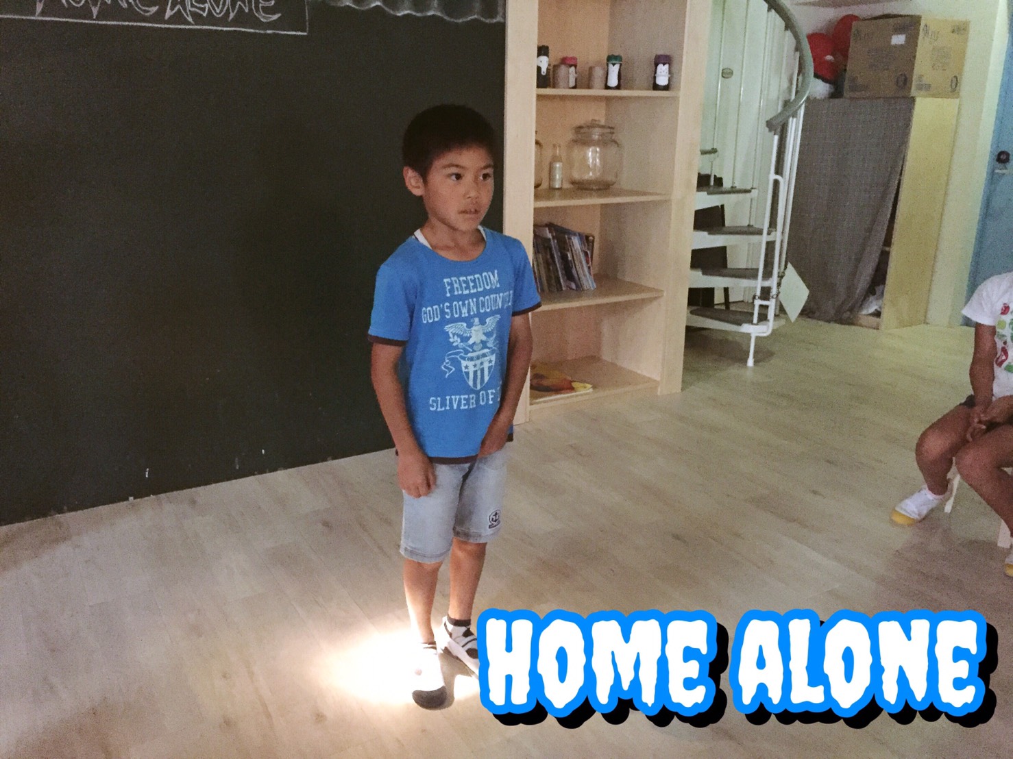 最後はみんなで外で遊べない分、ジェームス先生のヨガタイム、とストーリータイムでは、“Home alone”のストーリーをみんな迫真の演技で語ってくれていました。