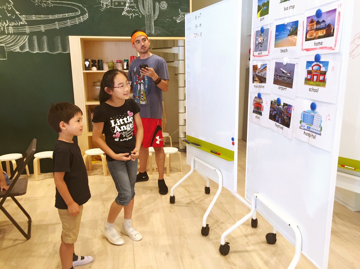 まずはいつものようにスナックタイムの後に、ペアになって「場所」の名詞のチェック。先週から練習しているので、みんなもかなり覚えてきて発音もよくなって来ました。