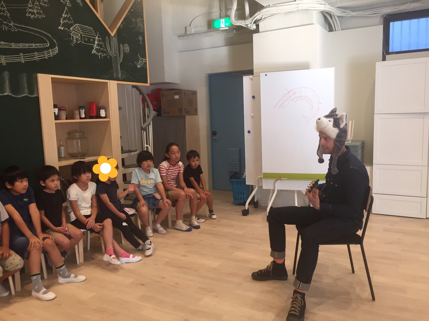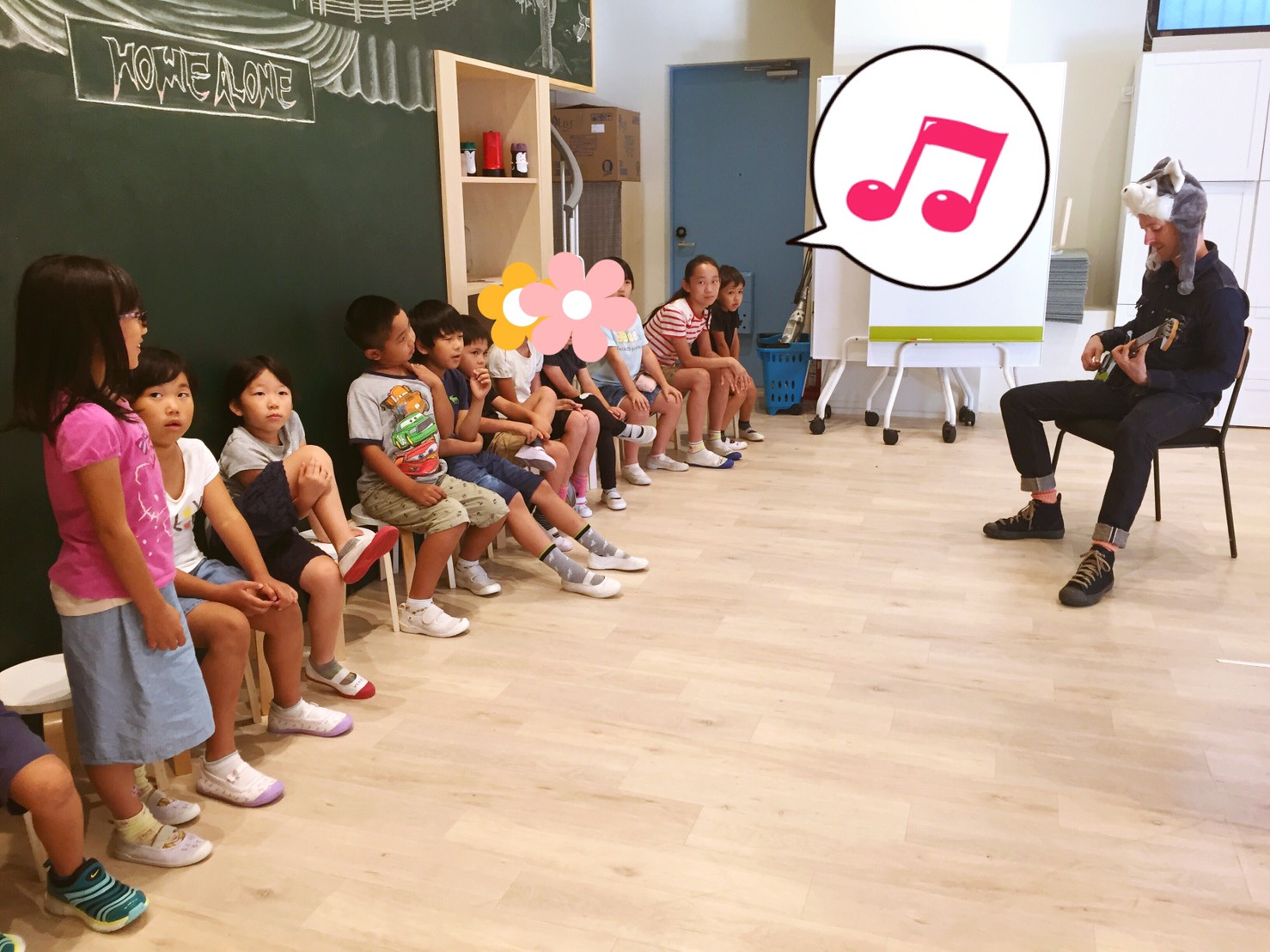 おやつのあとは、キッズパスポートのテーマソングをみんなで歌いました。こちらも日本人にとってはすこし発音しづらい表現を歌のスピードに合わせて、口と耳を慣らす練習です。