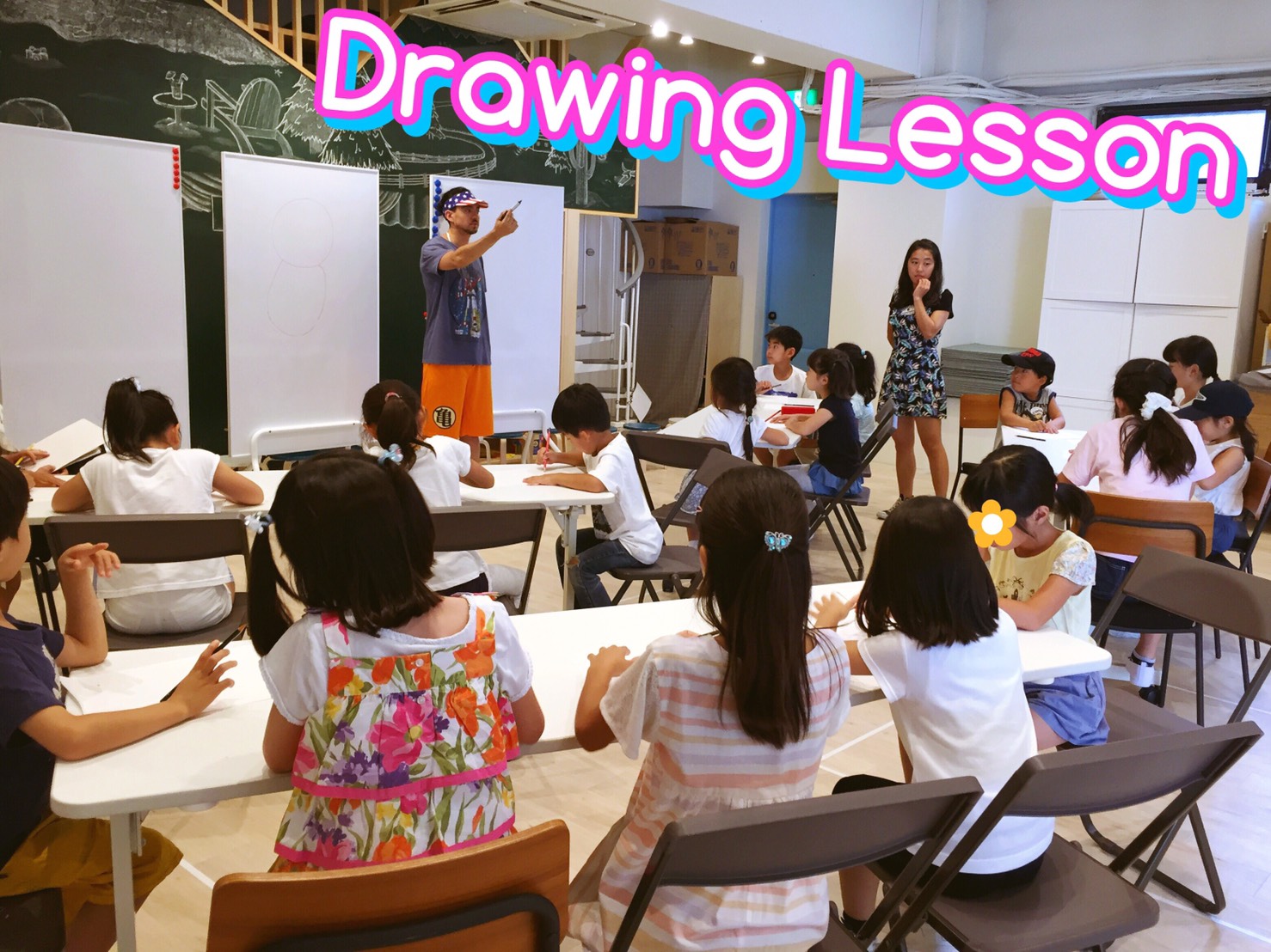 今日は久しぶりのお天気!ですが、今日は室内で絵画教室です。サマースクールも1週間が過ぎ、いよいよ夏本番です。