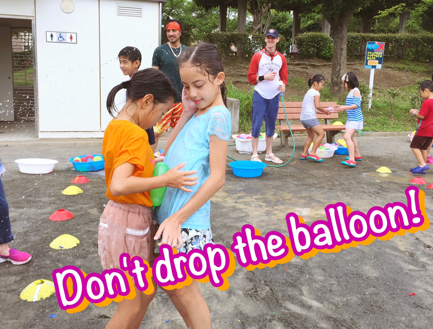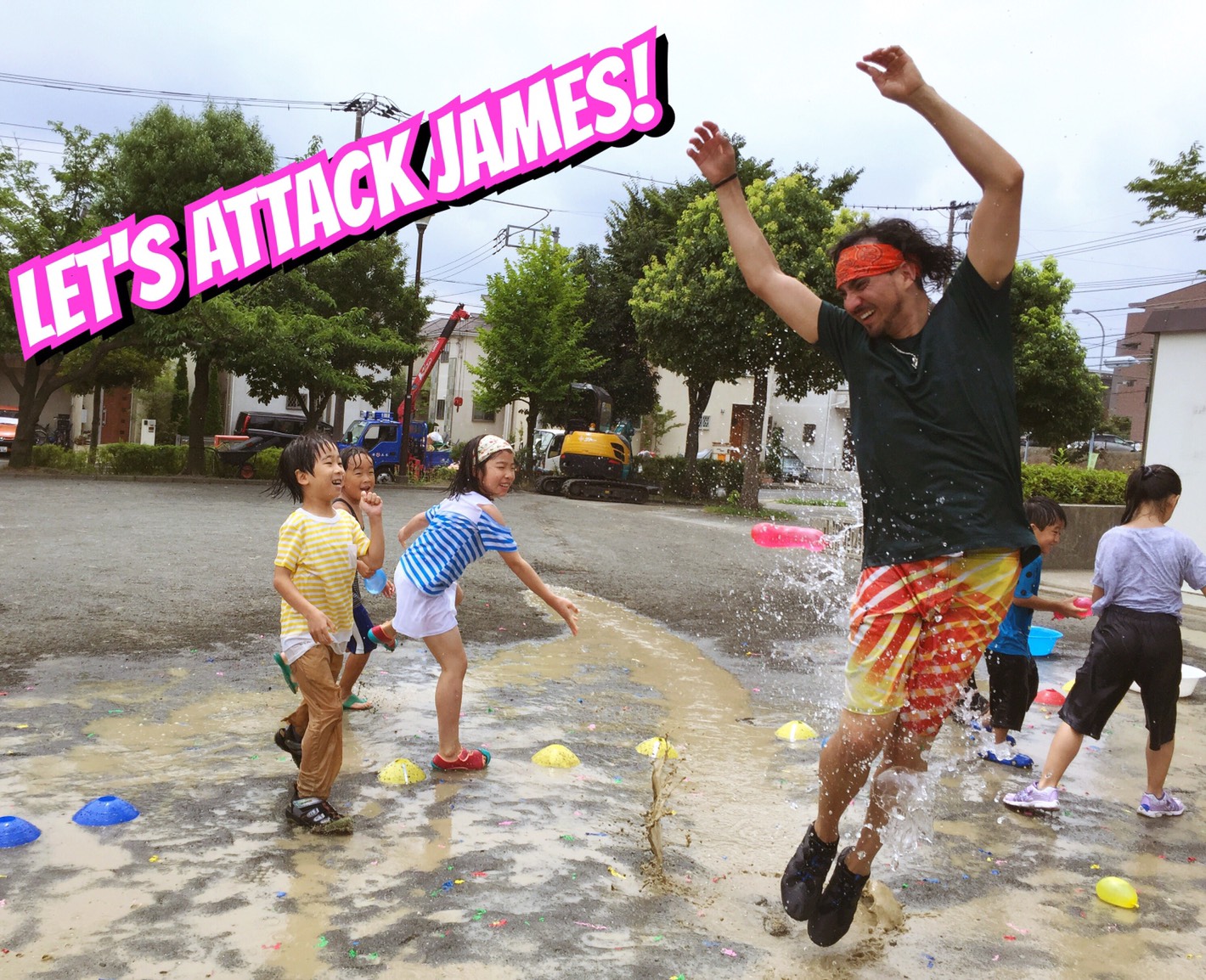 勝ったチームは、ジェームス先生の頭の上で水風船を割ることができます!!仕返し?(笑)!