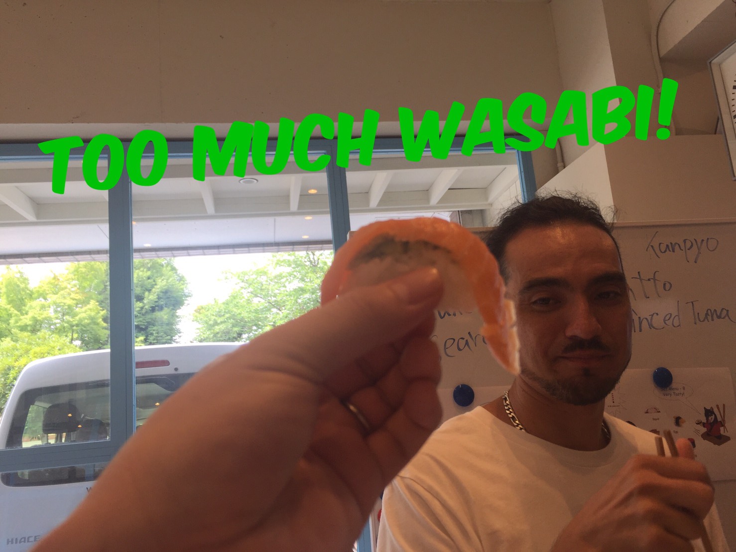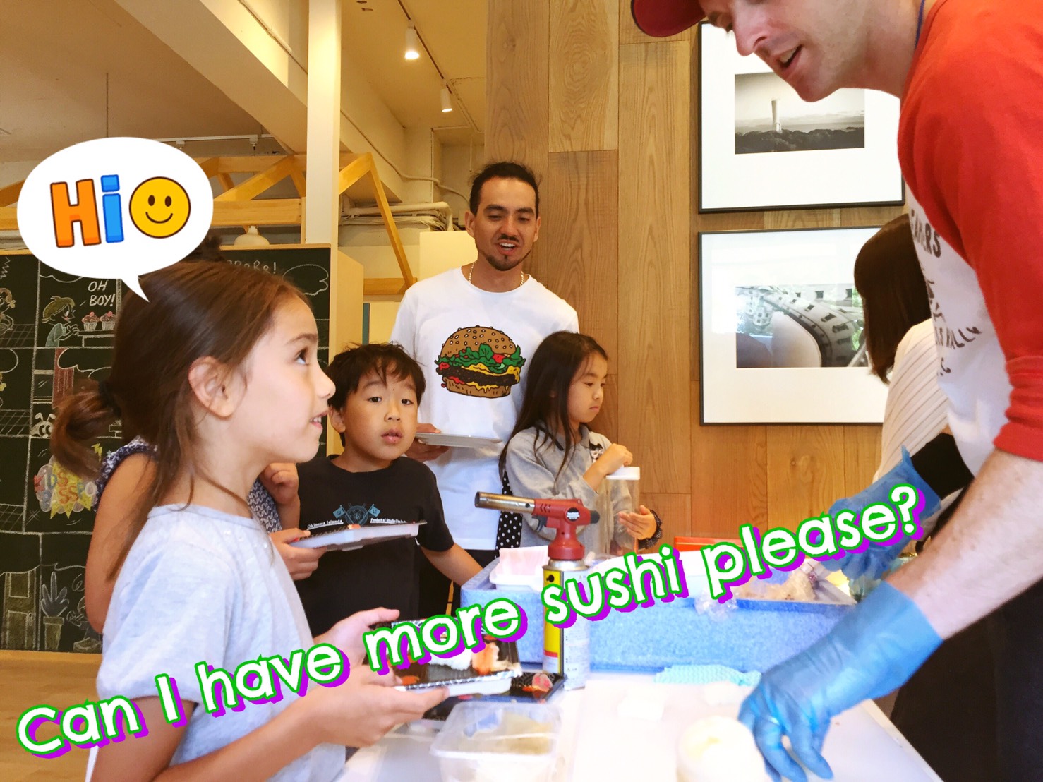 食べ終わったら順番に並んで”Can I have a ____, please?”(○○をください)と、好きなお寿司をオーダーして作ってもらいます。