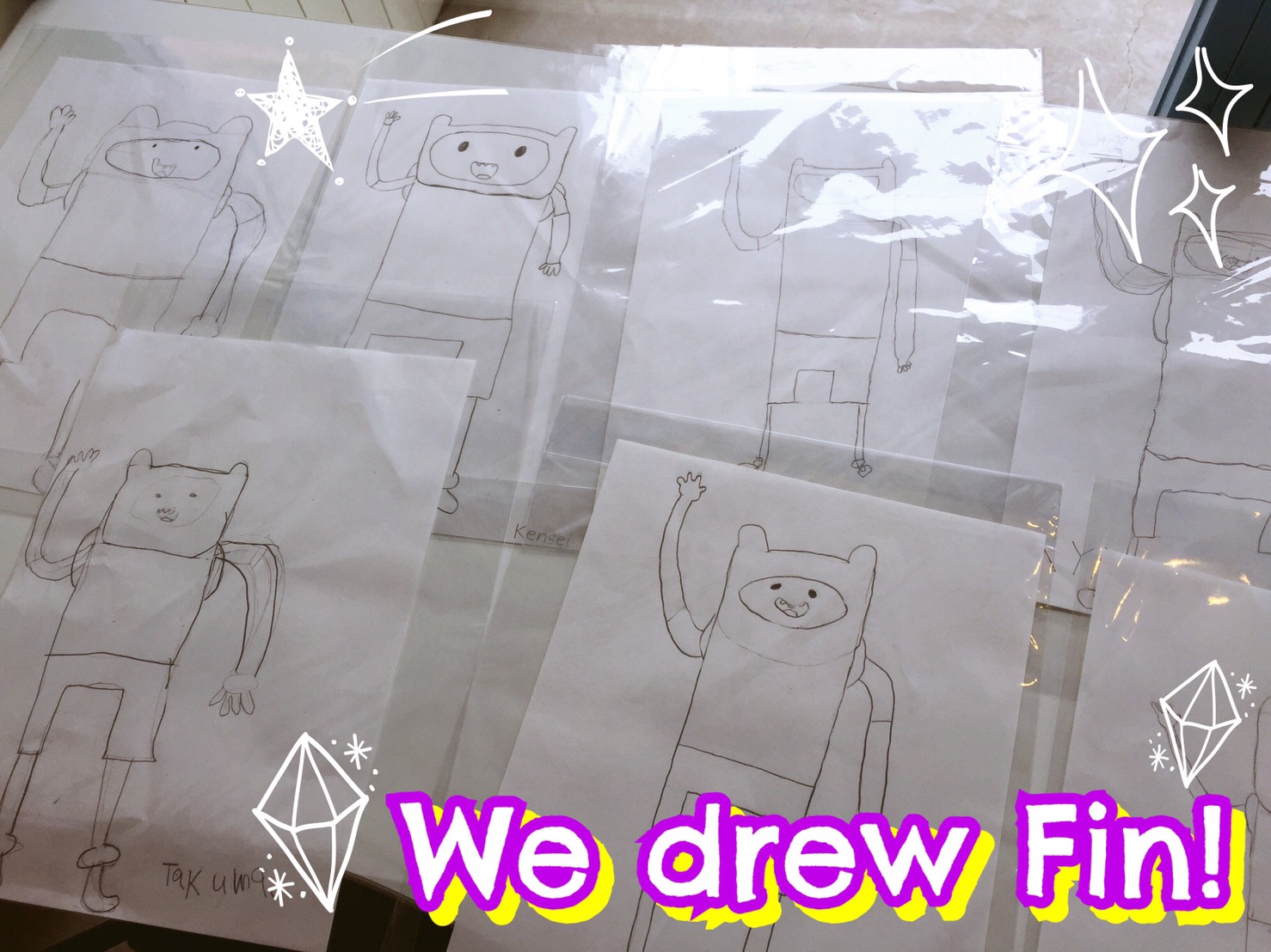 「ハチミツ大好きなあのキャラクター」の予定でしたが、先生達も大好き!アメリカで人気のアニメのキャラクター達に変更になりました。人間の少年「フィン」とフィンの親友の犬「ジェイク」の冒険ストーリー。