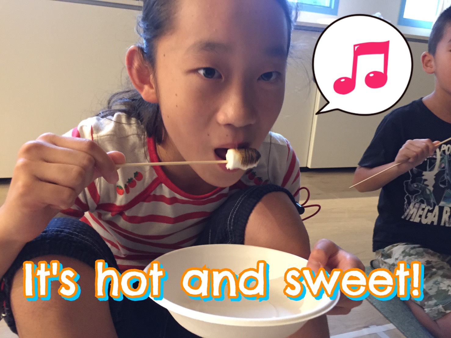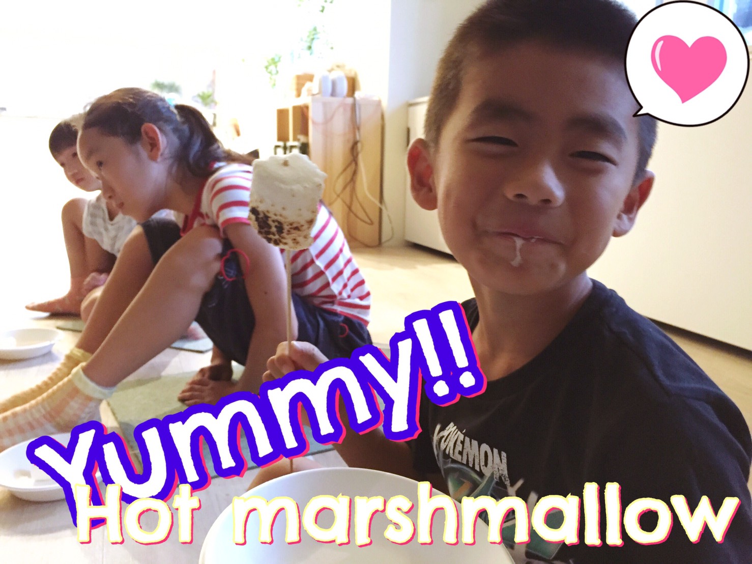 午後も盛りだくさんでした!ヨガに始まり、ミミックマイク、外は雨だったので、部屋の中で”スモア”(マシュマロを焼いたもの)、オークションをやりました。