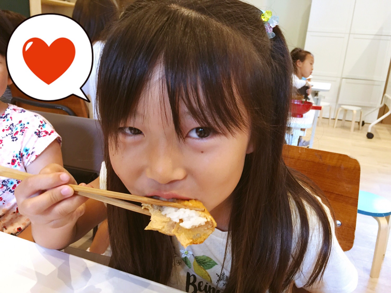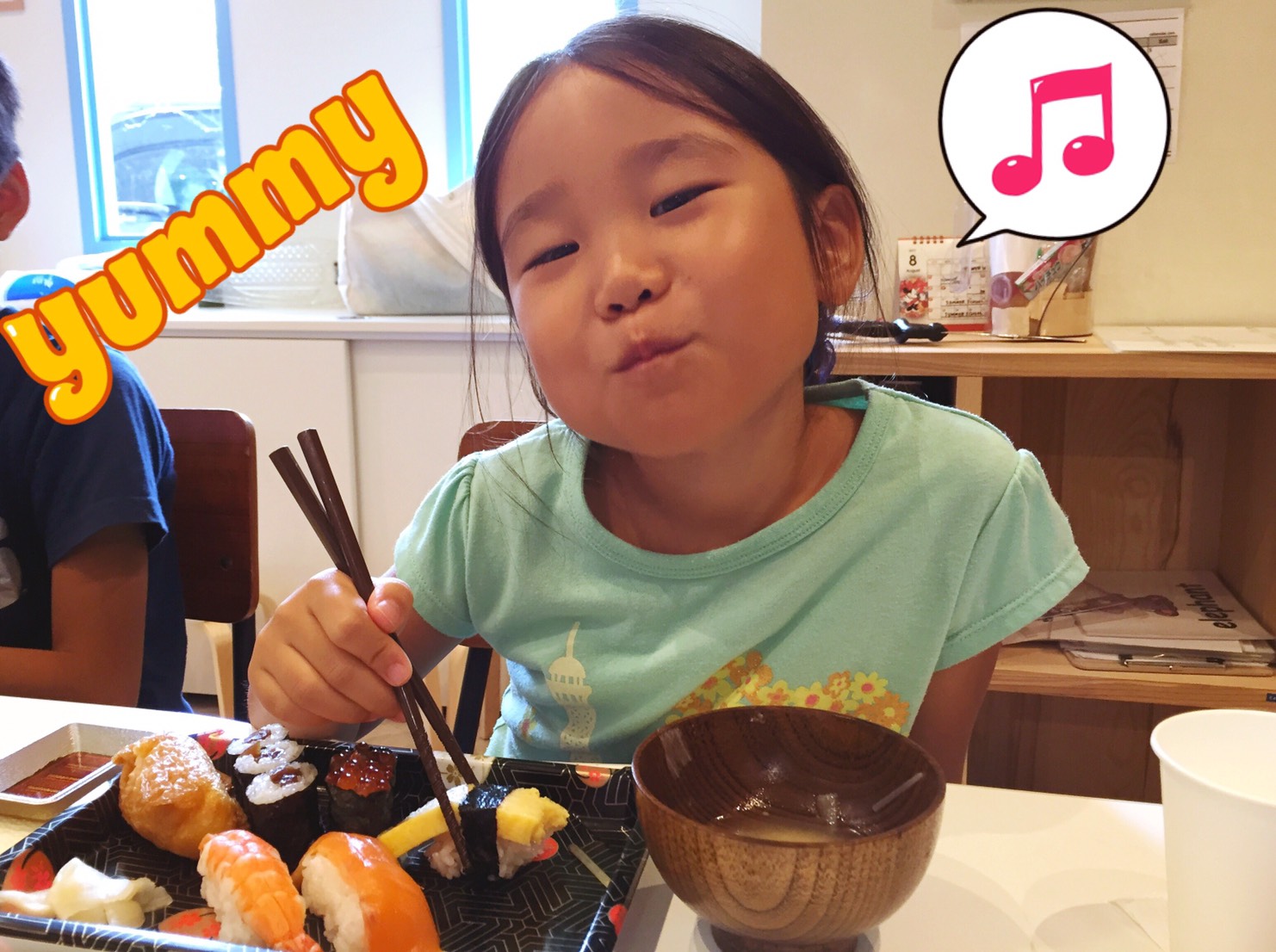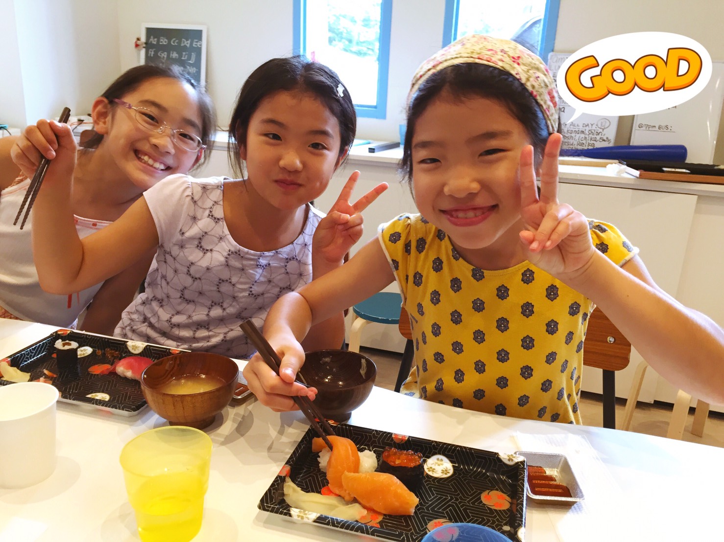 みんなにお寿司が配られたら手を合わせて”Let’s eat!!”(いただきます!!)