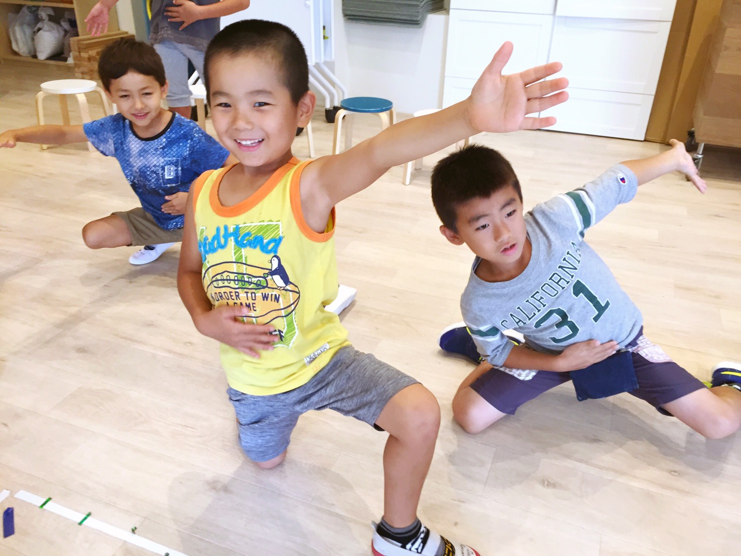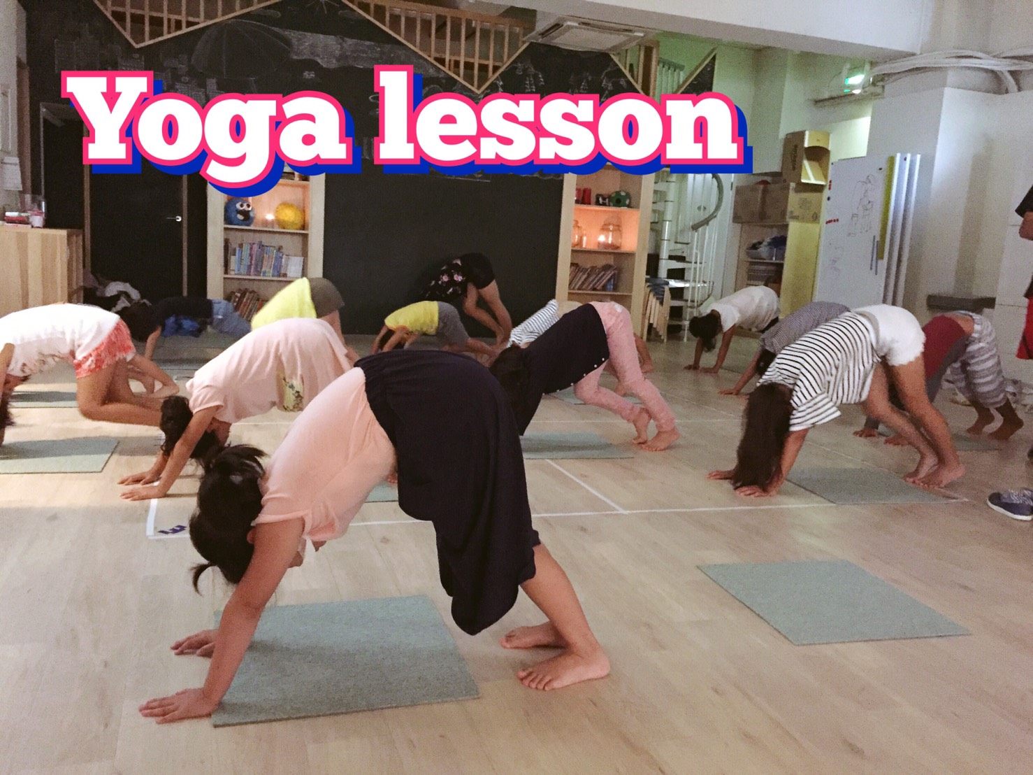 午後は学校が始まっている生徒さんと今日で最後の夏休みの生徒さん、みんな混ざってヨガタイム!