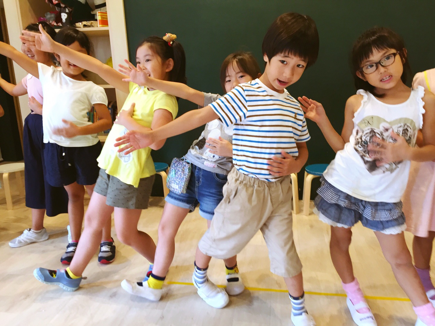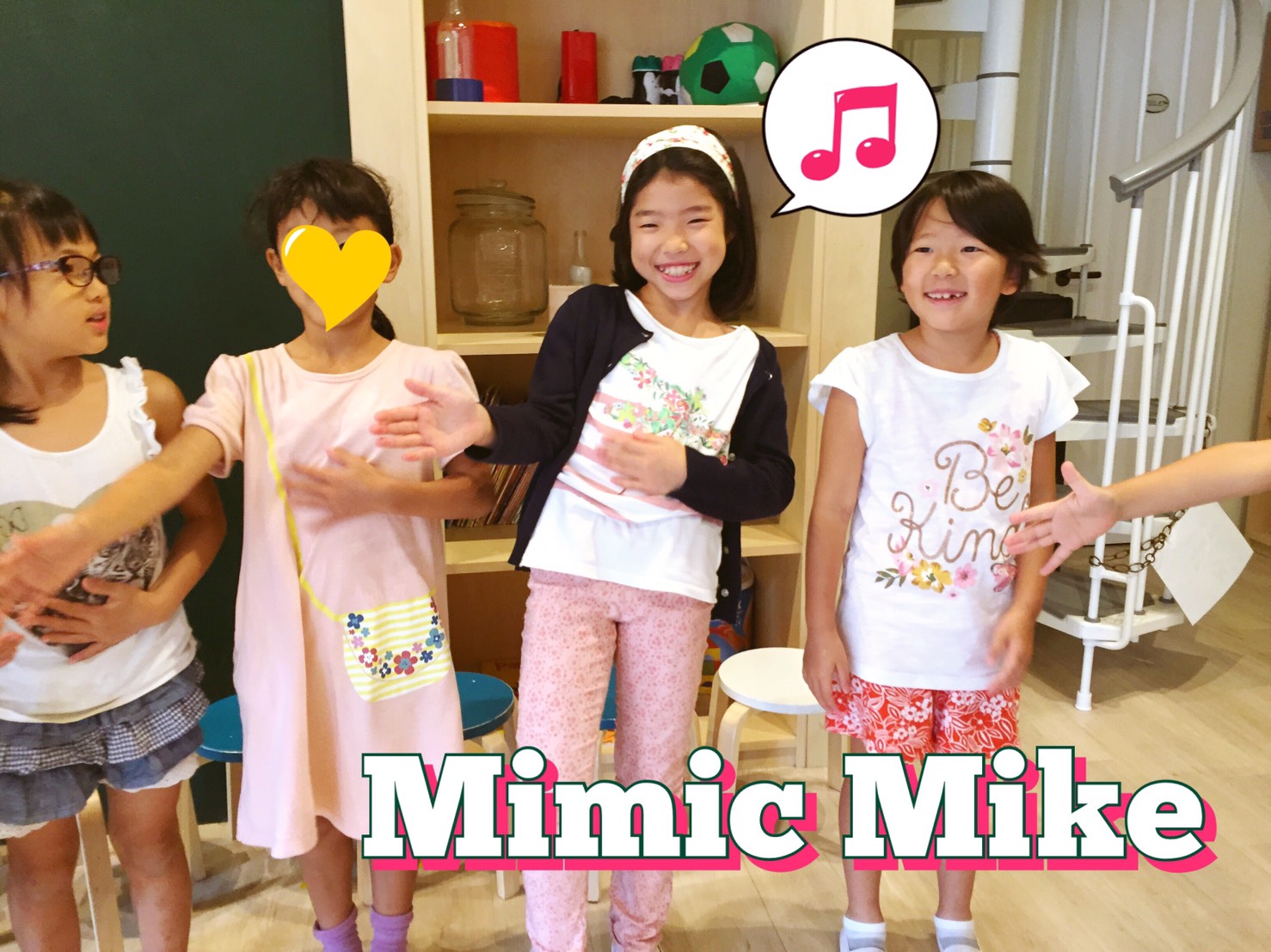 その後のミミック・マイクの時間では、歌ったり踊ったりと、様々なセンテンス表現を、外国人のように体全体でモノマネ!だんだんはずかしさもなくなってきてみんな表現力があがってきているね!