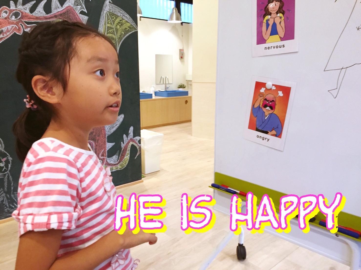 ふとした時に先生達から”Are you happy?”(ハッピーかい?)や”Are you angry?”(怒ってるの?)と聞かれる事もあるので”Yes, I am.”(うん、そうだよ)や”No, I’m not.”(ううん、そうじゃないよ)と答えてみてね!