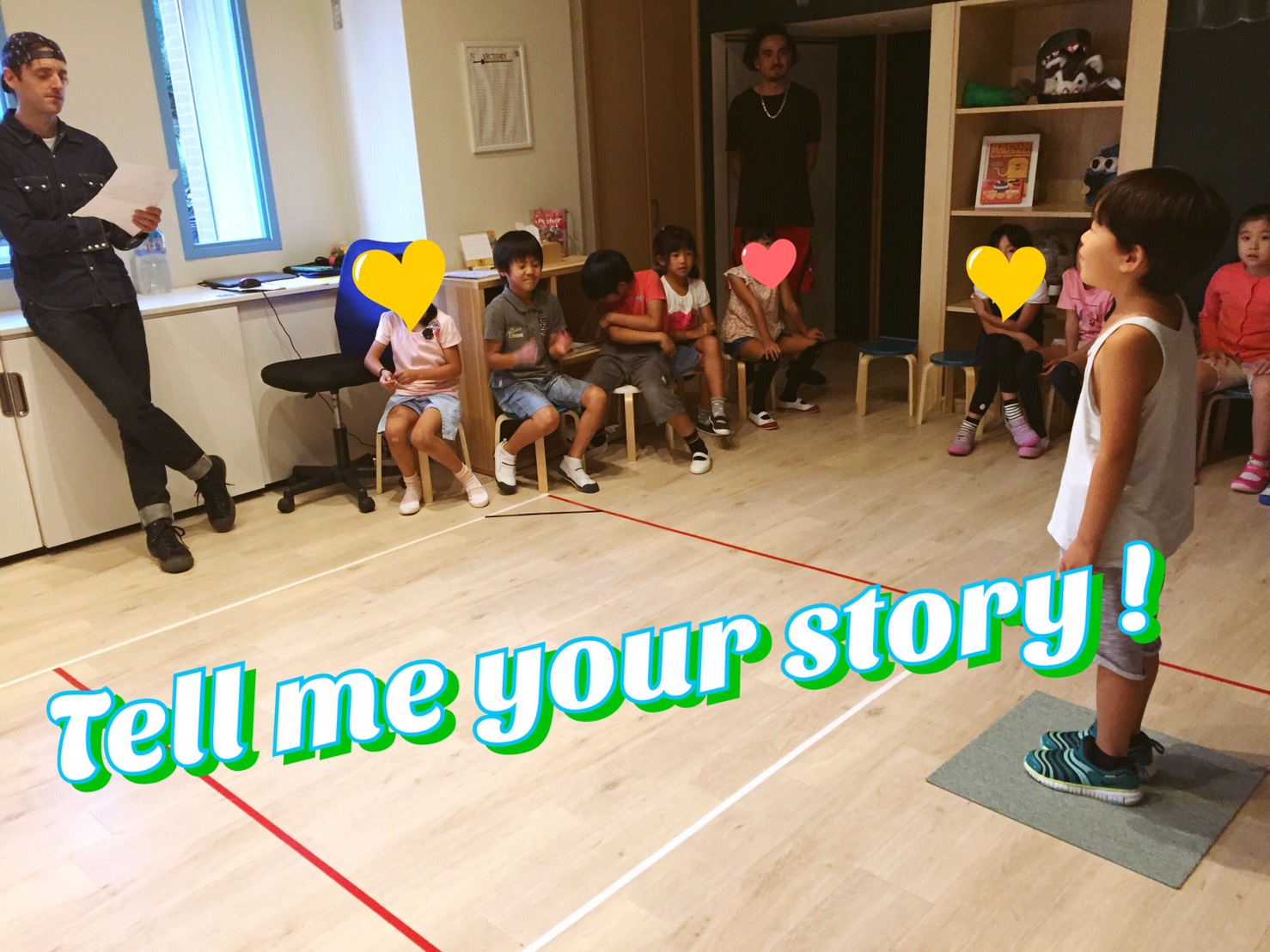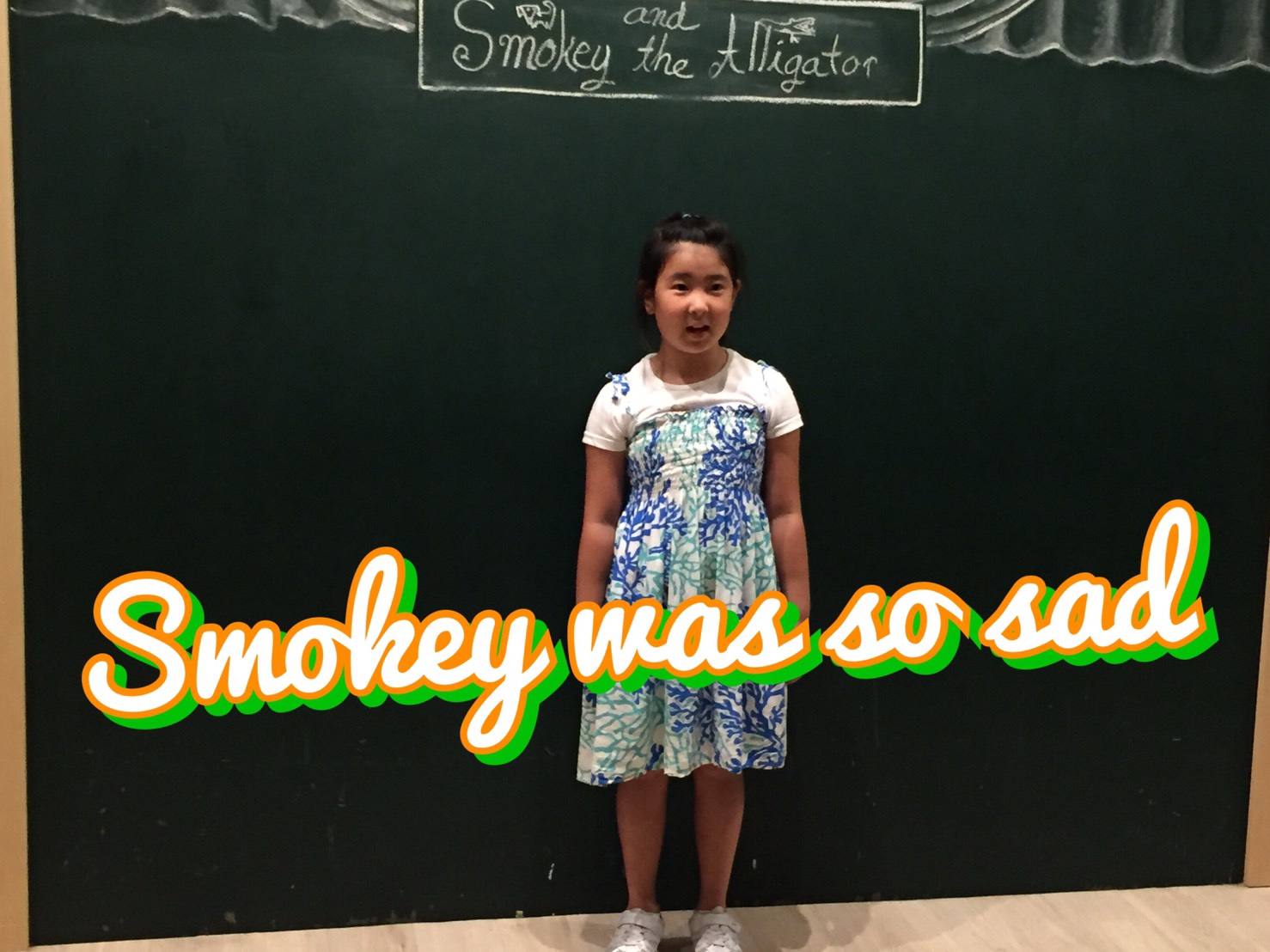 最後は物語(ストーリー)を、みんなの前で発表します。単語、センテンス、表情、セリフの部分、ナレーションの部分等何度も繰り返したり、他の生徒さんのを見聞きして、みんな徐々に上手になっていきます。