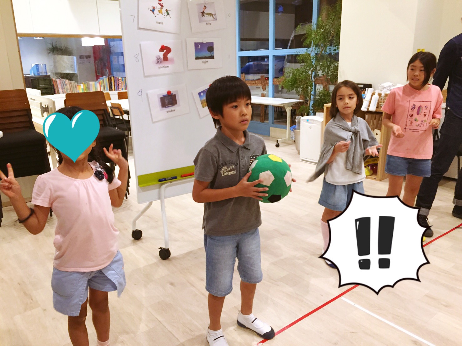 今日もまずは最近のターゲットワードになっている単語から練習。“Hot Potato”でボールを回しながら、単語を繰り返す。