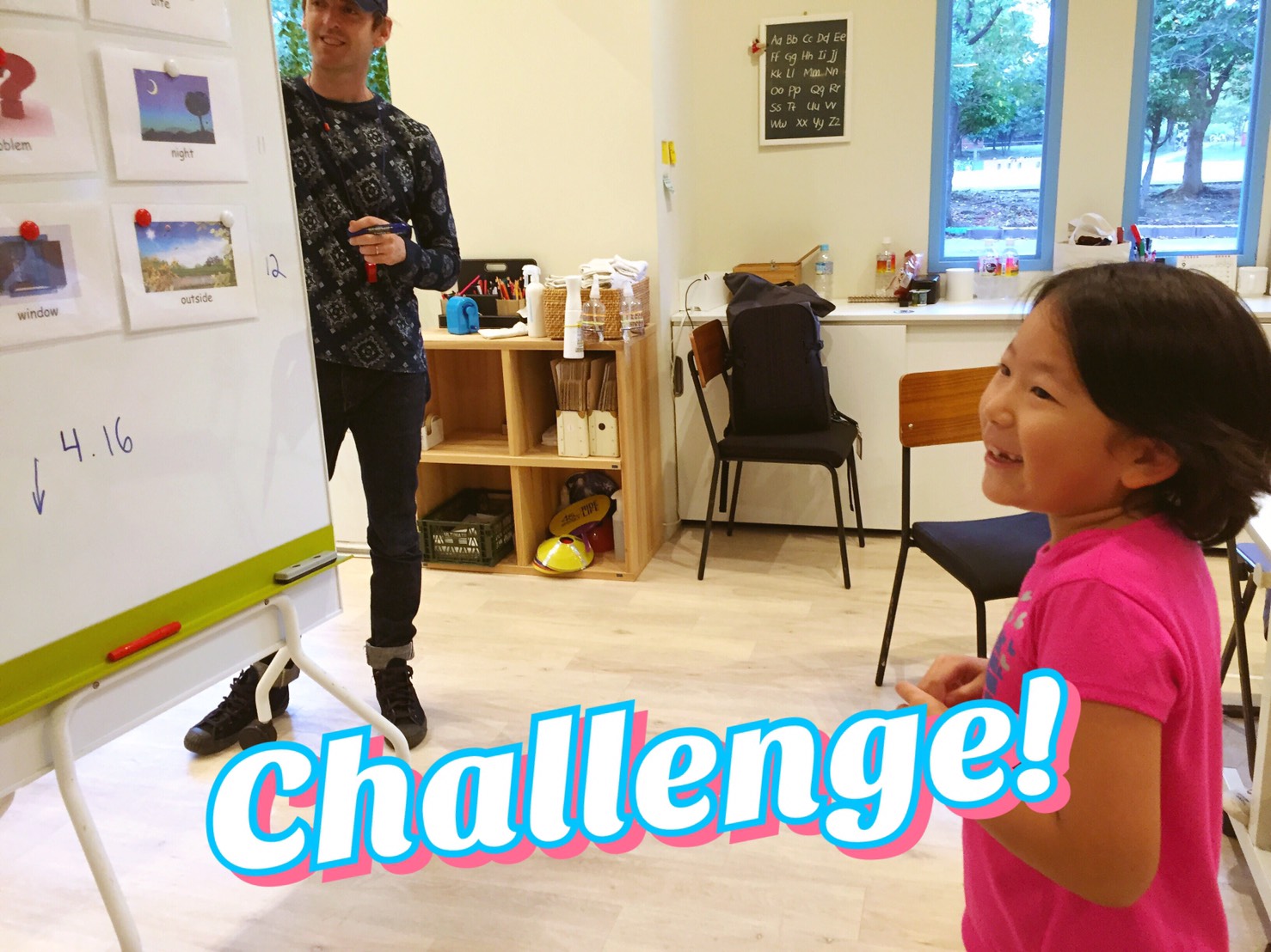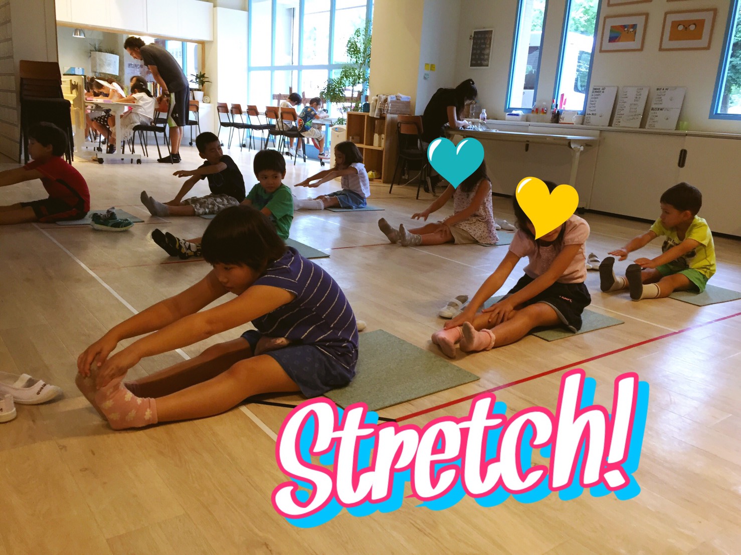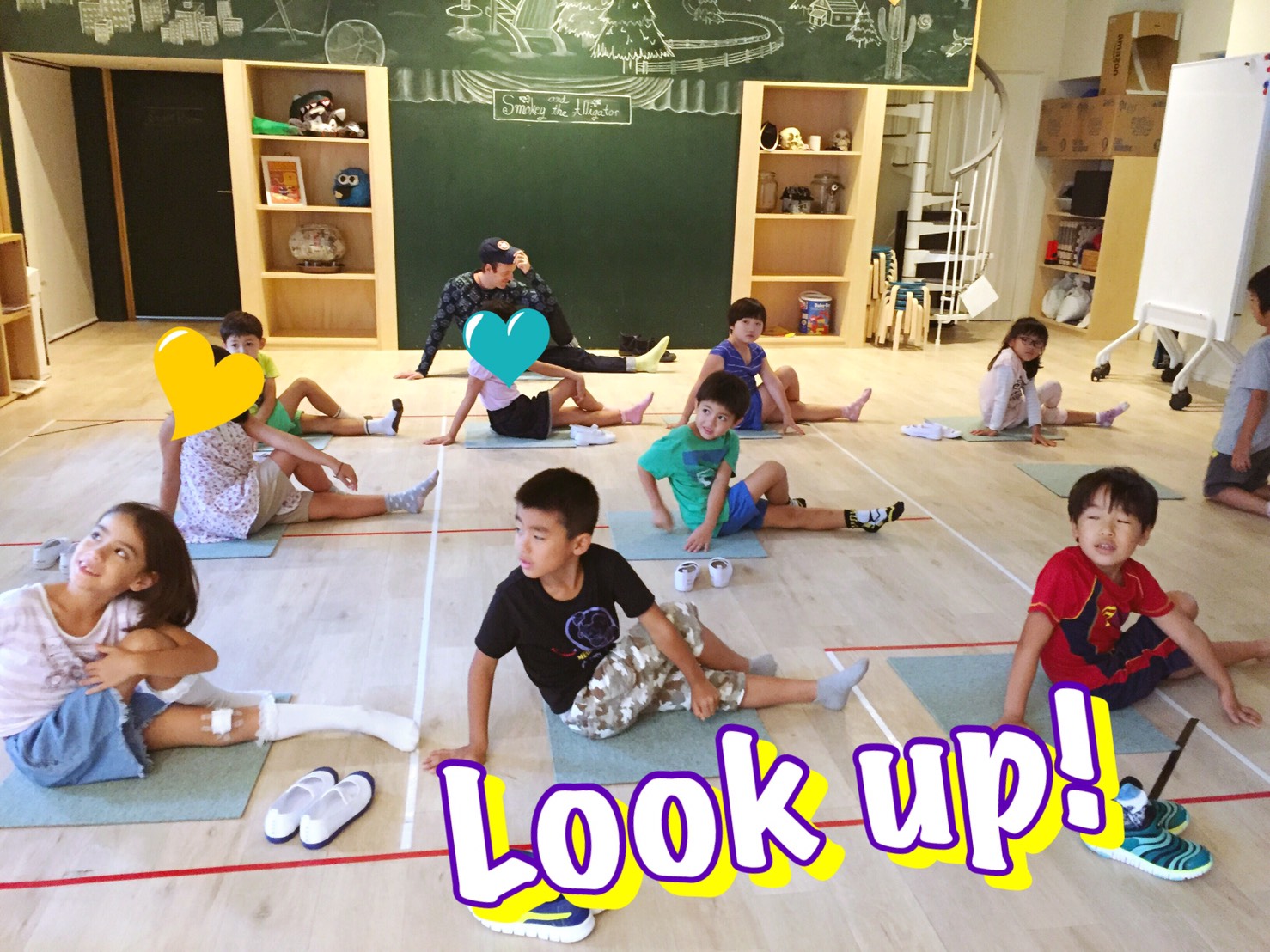 スクールに来て、宿題が終わった生徒さんから順に体操やゲームをしてからだと脳をほぐしていきます。先生の英語にならって、体を動かしながら一緒に単語も覚えていきましょう。