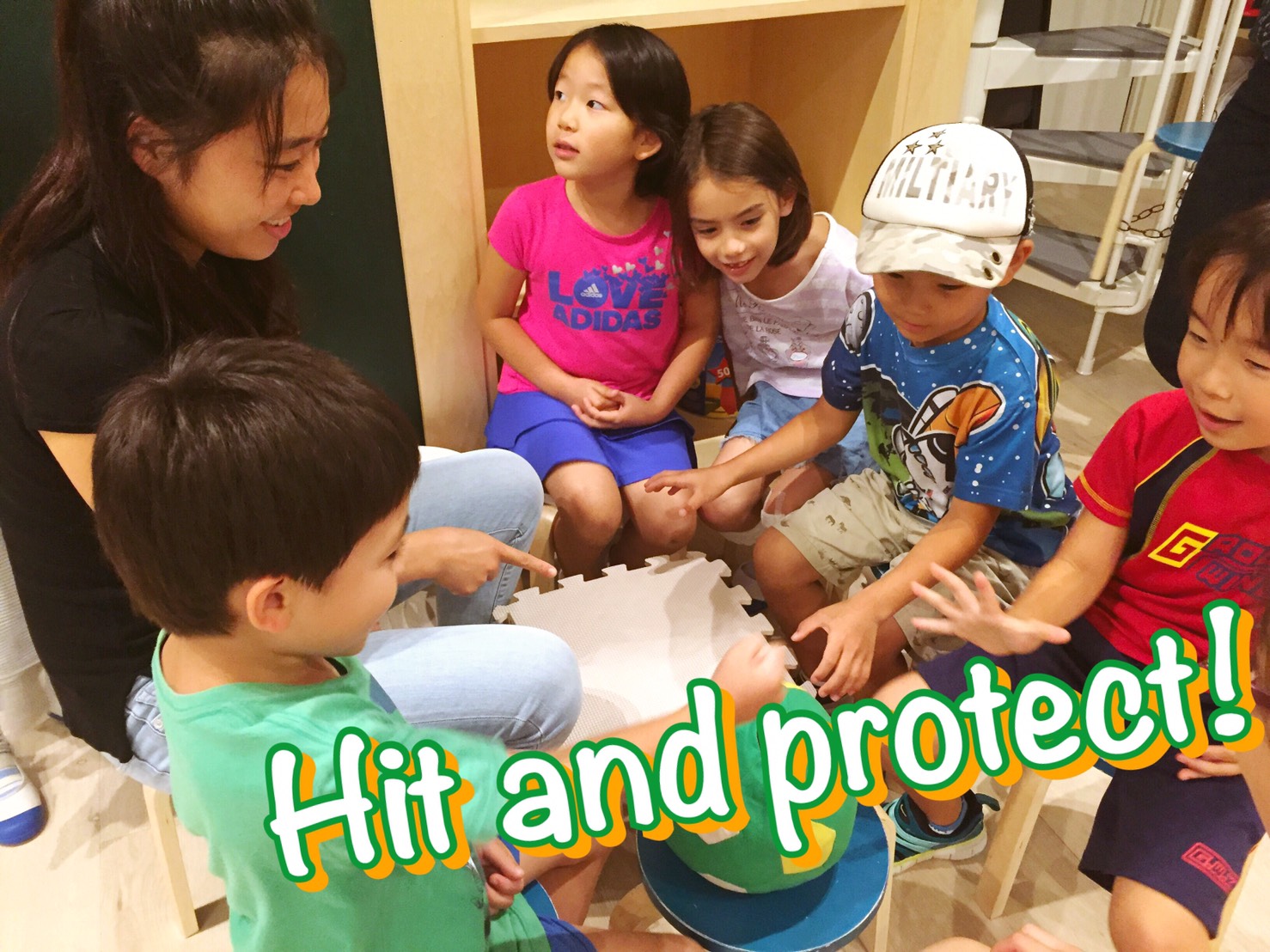 キングオブポップが”Beat it… Beat it…”と歌うあの名曲のリズムに、マイク先生がキッズパスポート用にハロウィンの歌詞をつけてくれました。先生達がお手本を歌ってくれて、歌詞をゆっくり言ってくれるのに合わせてみんなも一緒に歌いました。
