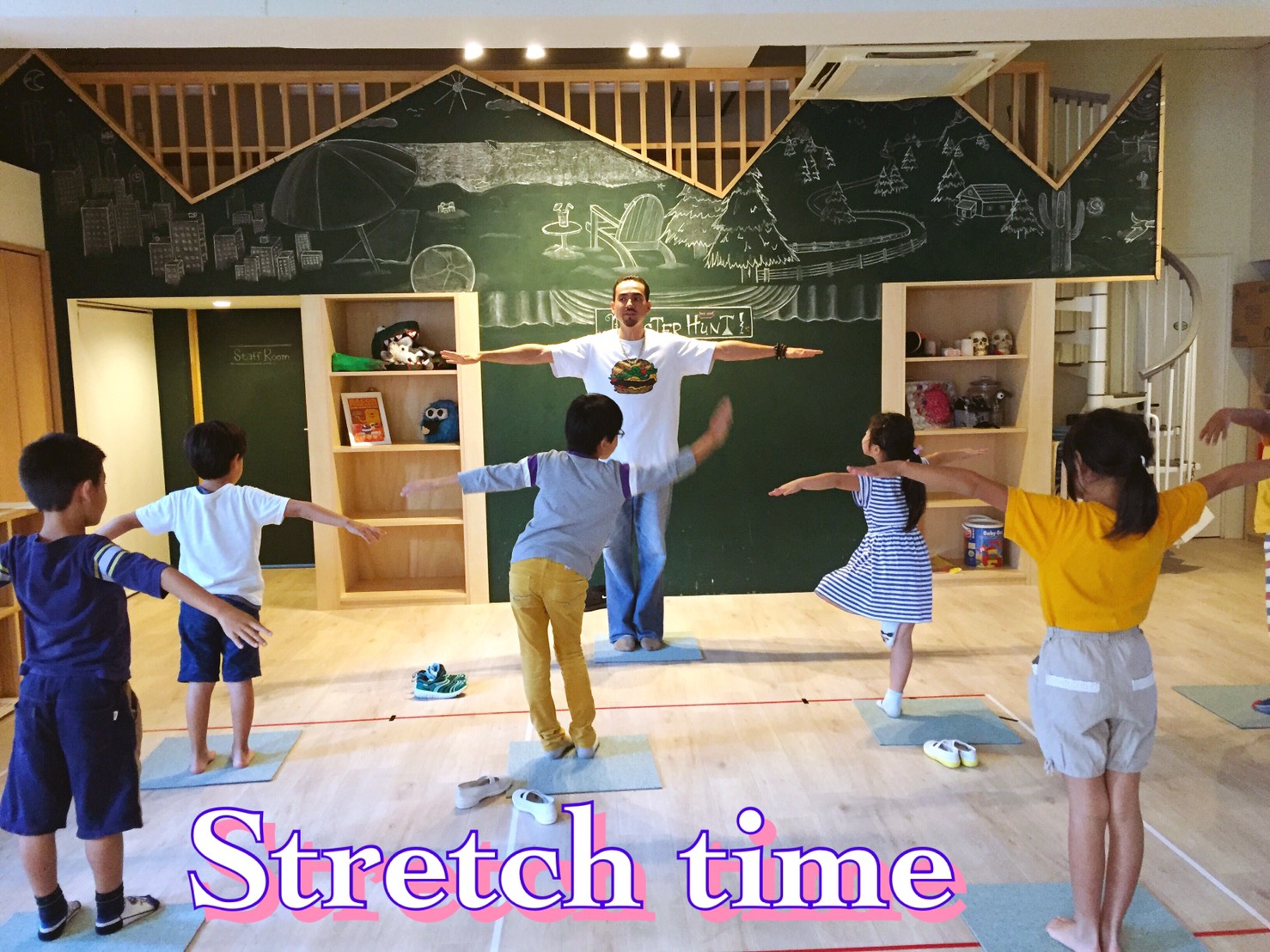 宿題が終わった生徒さん、無い生徒さん達から順にストレッチをしました。