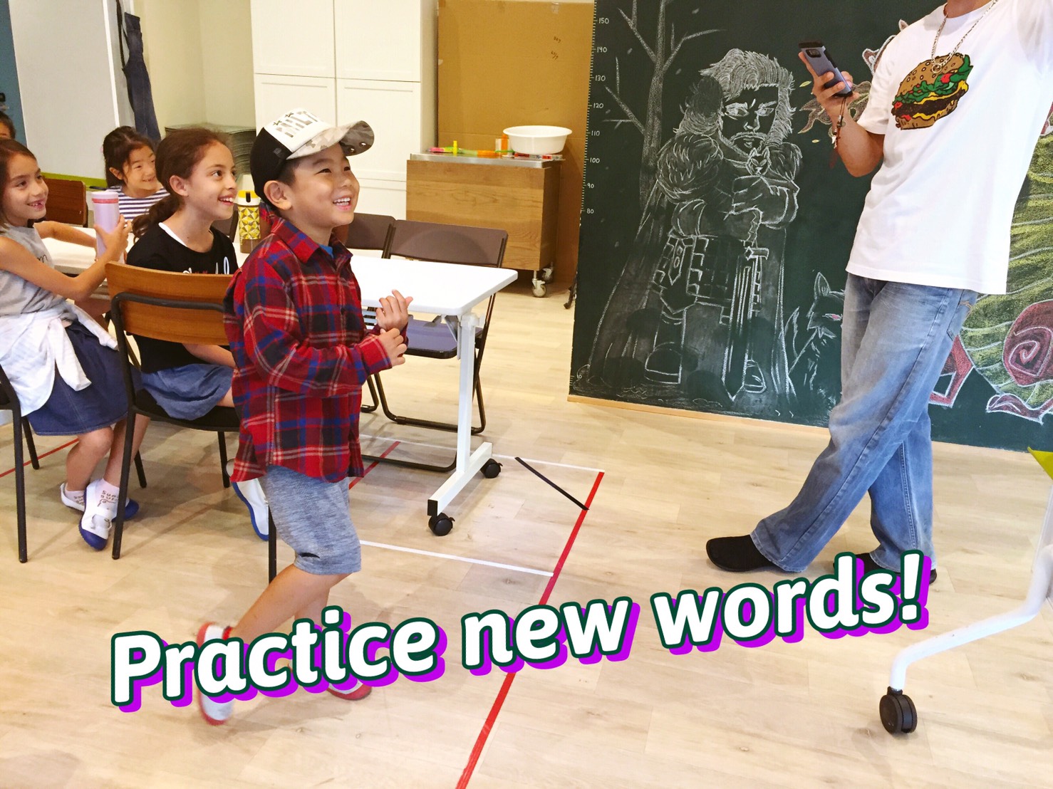 今週からスタートした新しいストーリーに出て来る単語の練習。みんなの前で発表したり、ペアになって練習をしたり、いかに早く言えるか?を競ってみたりと、いろいろな方法で学んでいきます。