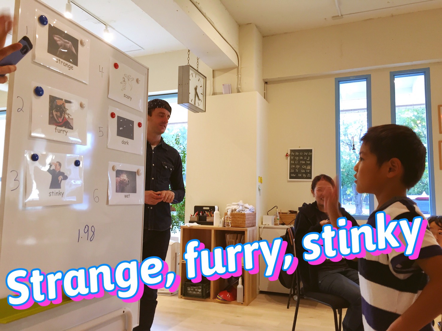 先生:”What’s scary in Japanese?”(Scaryって日本語でなんて言うの?)