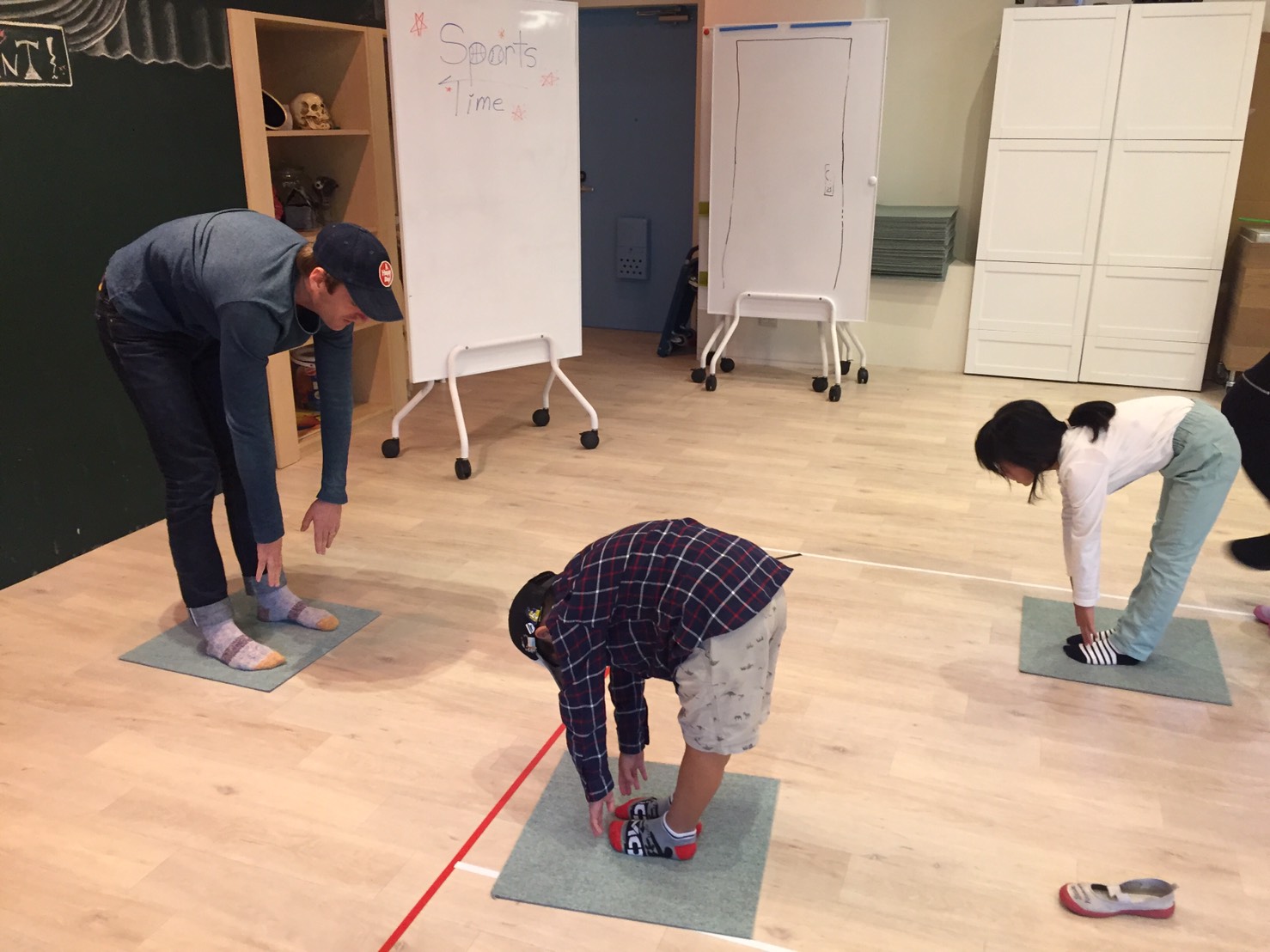 宿題を終わらせた生徒さん達もどんどん参加して”Target language”(覚えて欲しい言葉)の練習をして、その言葉を使ってボールゲームをやりました。