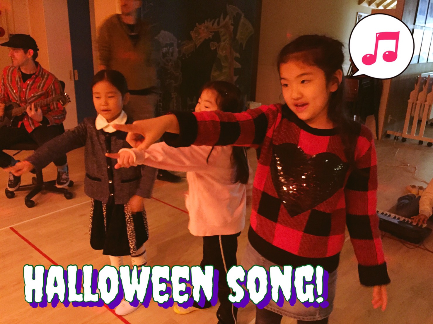 最後は生徒さんが大好きな(送迎バスの中でもみんな歌っています)、ハロウィンソングの練習です。