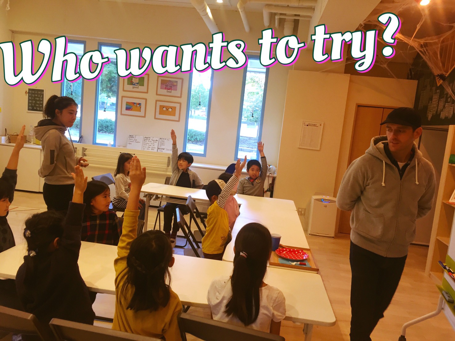 その後はハロウィンソングを歌って、“Trick or treat”のゲームを行いました。