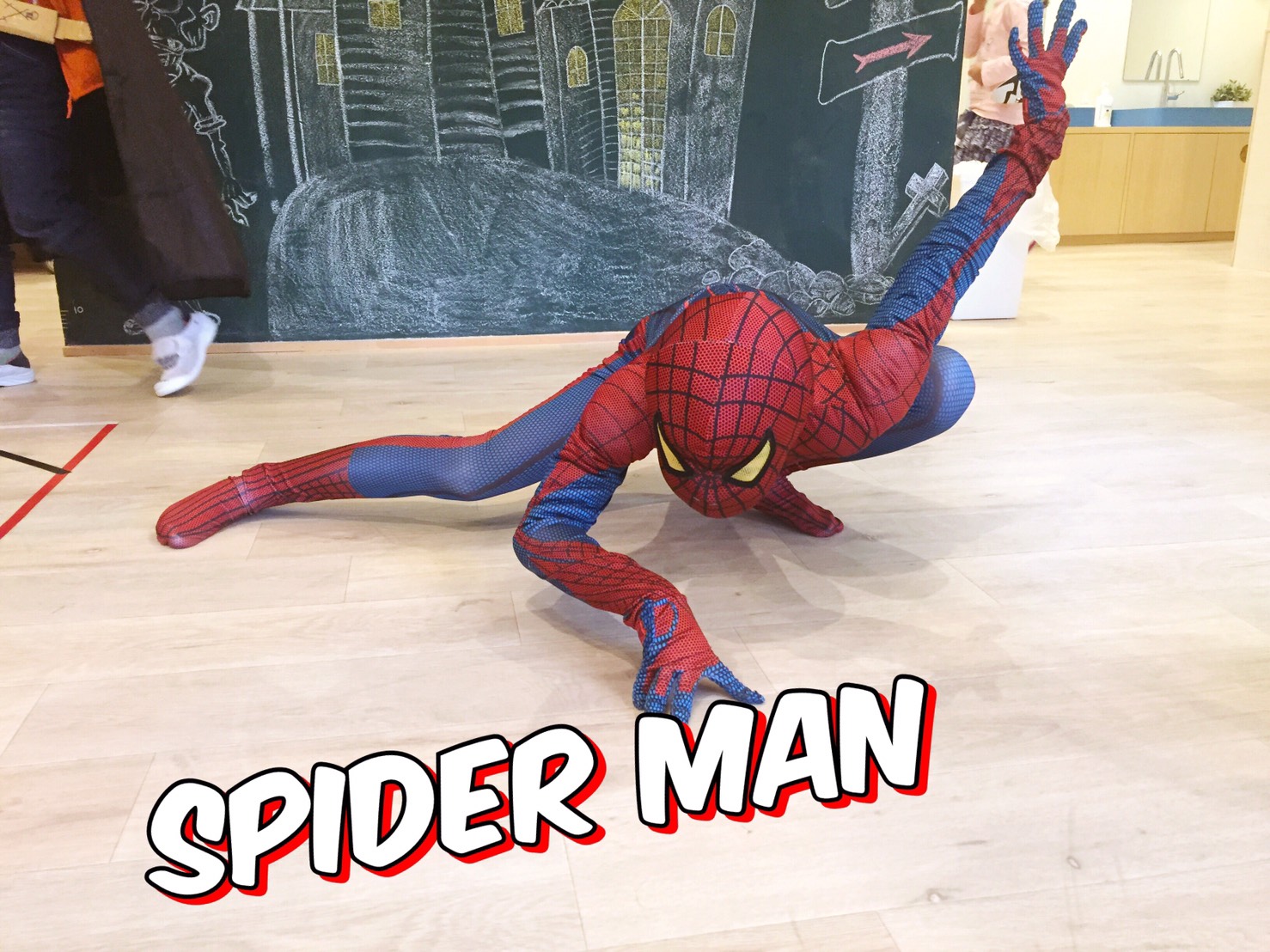 来校時にコスチューム姿の先生達がキャンディーを持ってみんなを外でお出迎え。先生:”Happy Halloween guys.”(みんなハッピー・ハロウィン)