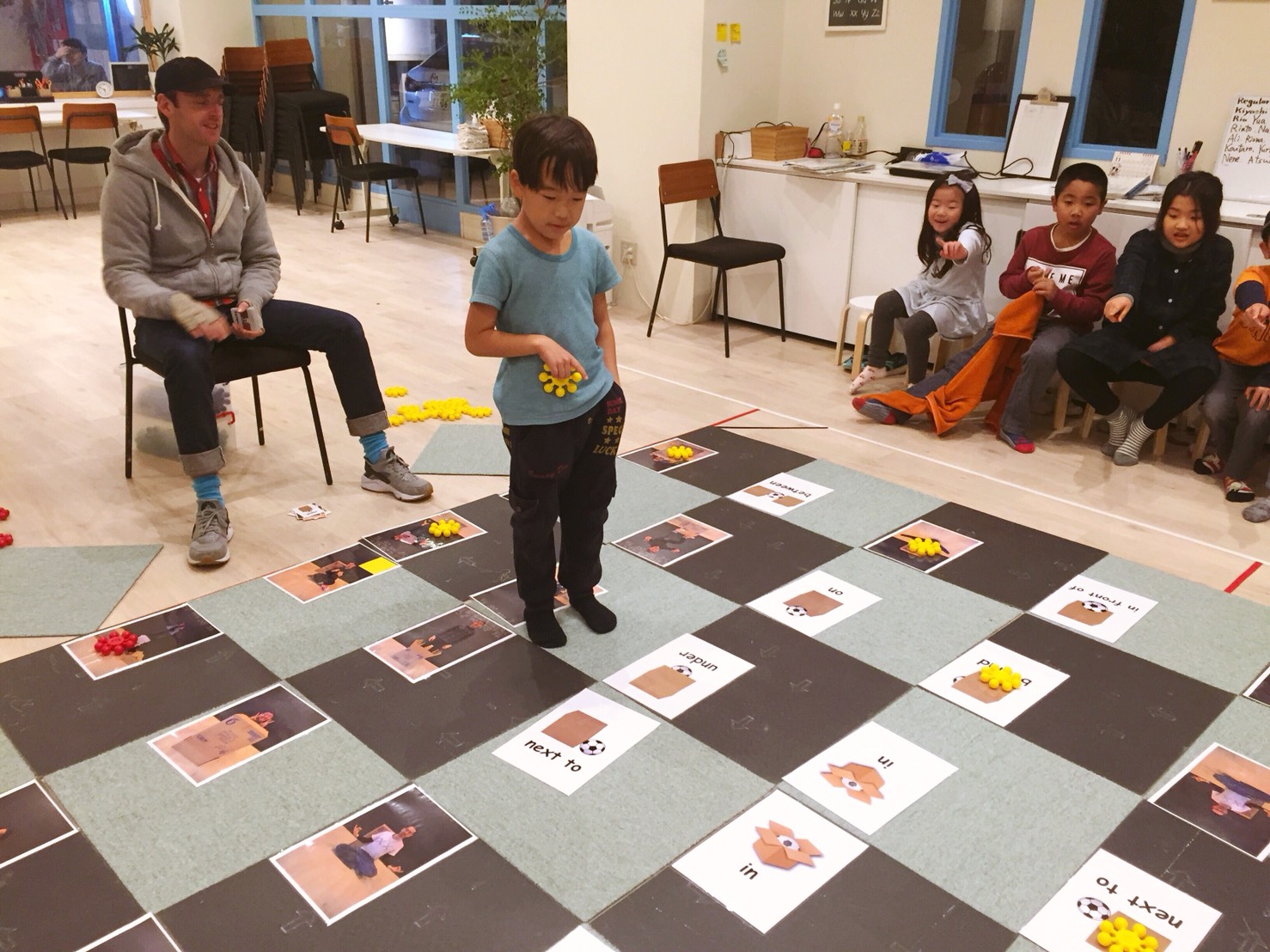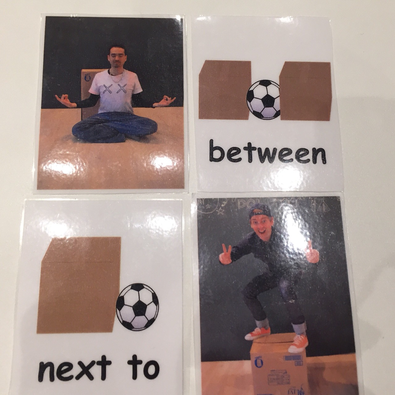 最後は、前置詞の練習。といっても難しくやるのではなく、カードゲームを通じて身につけていきます。