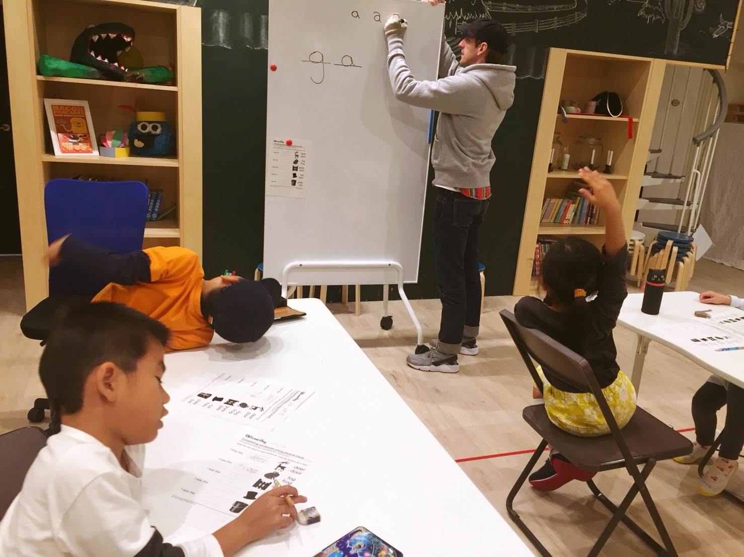 途中ライティングの練習もしました!慣れた言葉やアルファベットもそれぞれ「文字でかける練習」もして行きましょう。