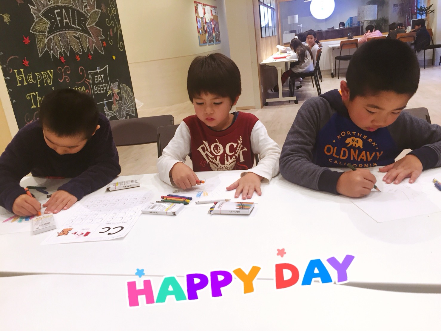 明日のサンクスギビングデーに合わせてArt&Craftを行いました。