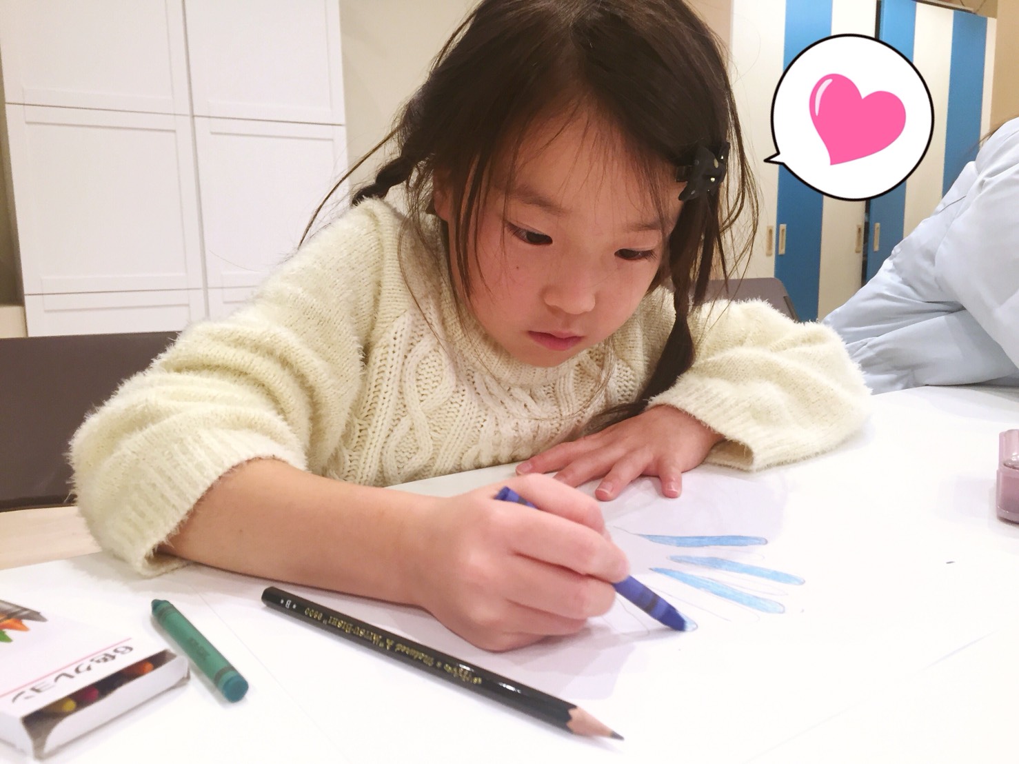先生:“You can use color you like and make it colorful.”(好きな色を使っていいし、カラフルにしてもいいよ!)