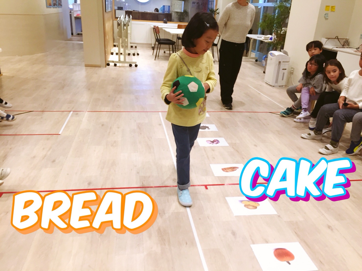 続いては、サンクスギビングや秋にちなんだ食べ物のカードを使って一言。