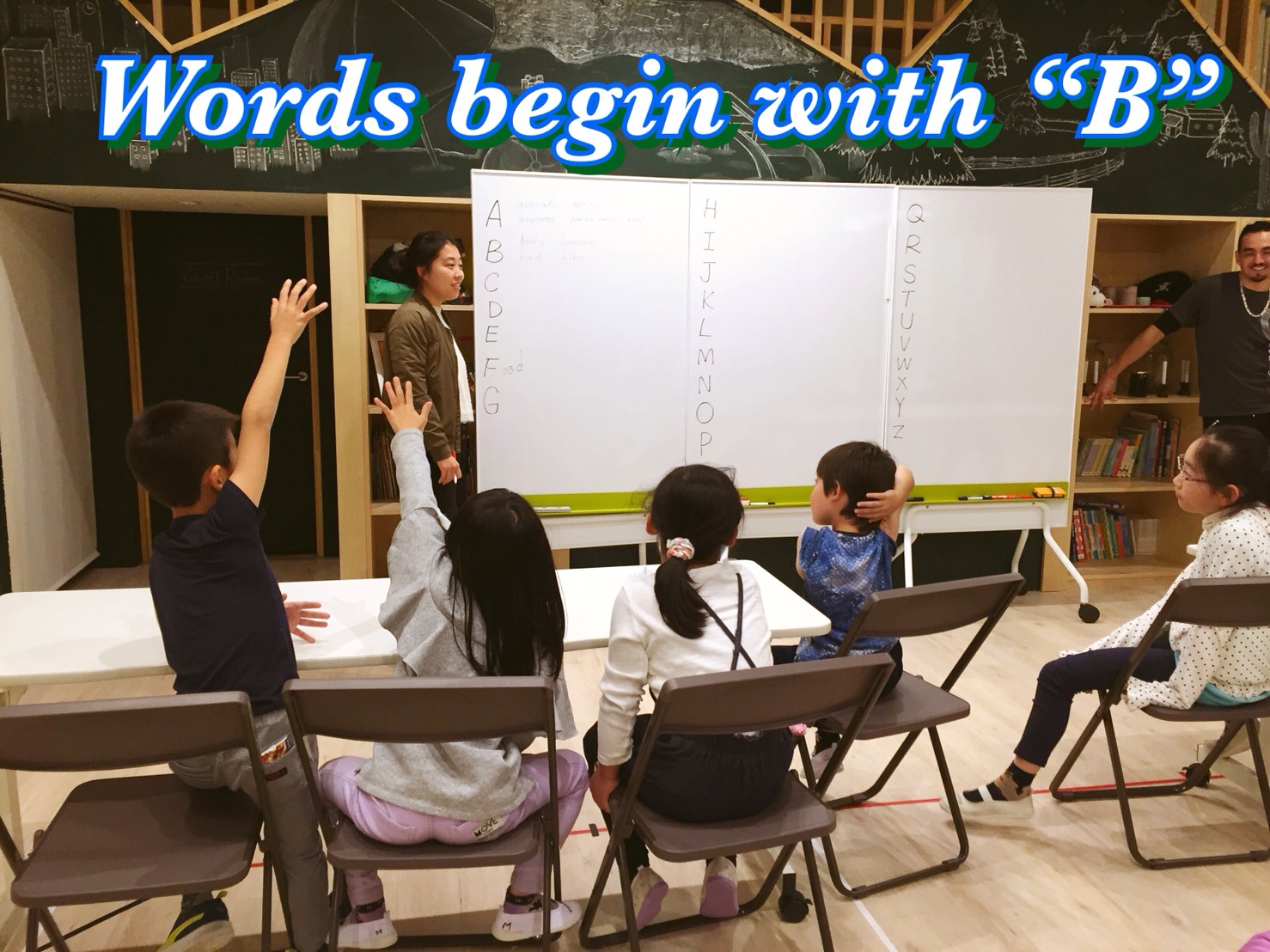 最後は「語彙を増やす」「英語の綴りを覚える」目的で、頭文字を限定した単語をたくさん出していくゲームを行いました。