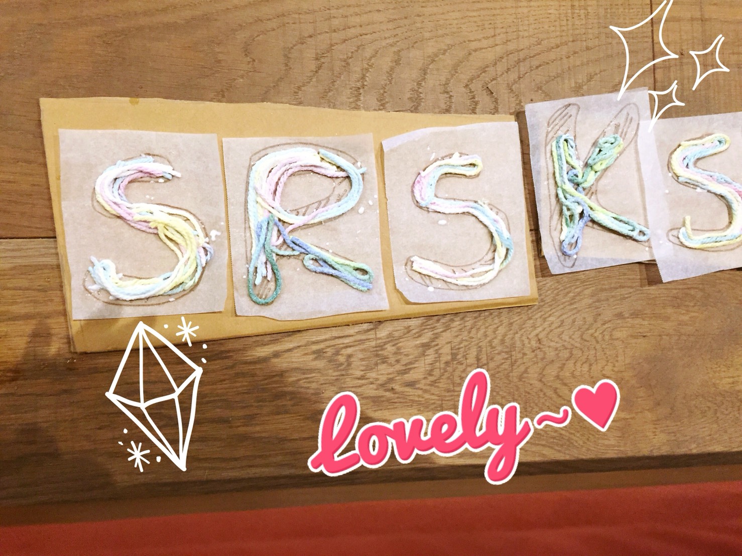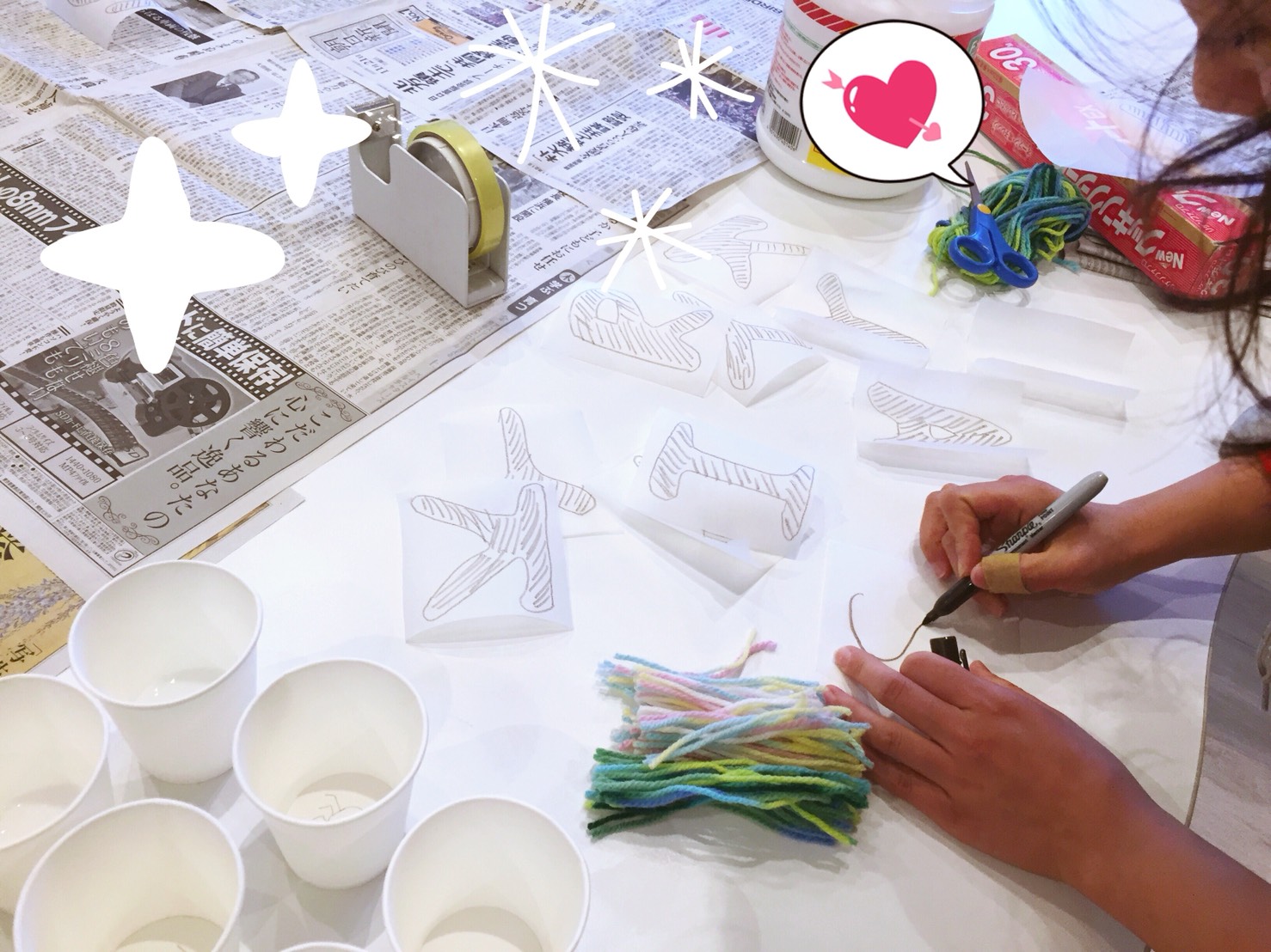 今日のワークショップはクラフト。好きなアルファベットの文字を板の上に書いていきます。乾かすと固まるのでオブジェとしても使えるね!