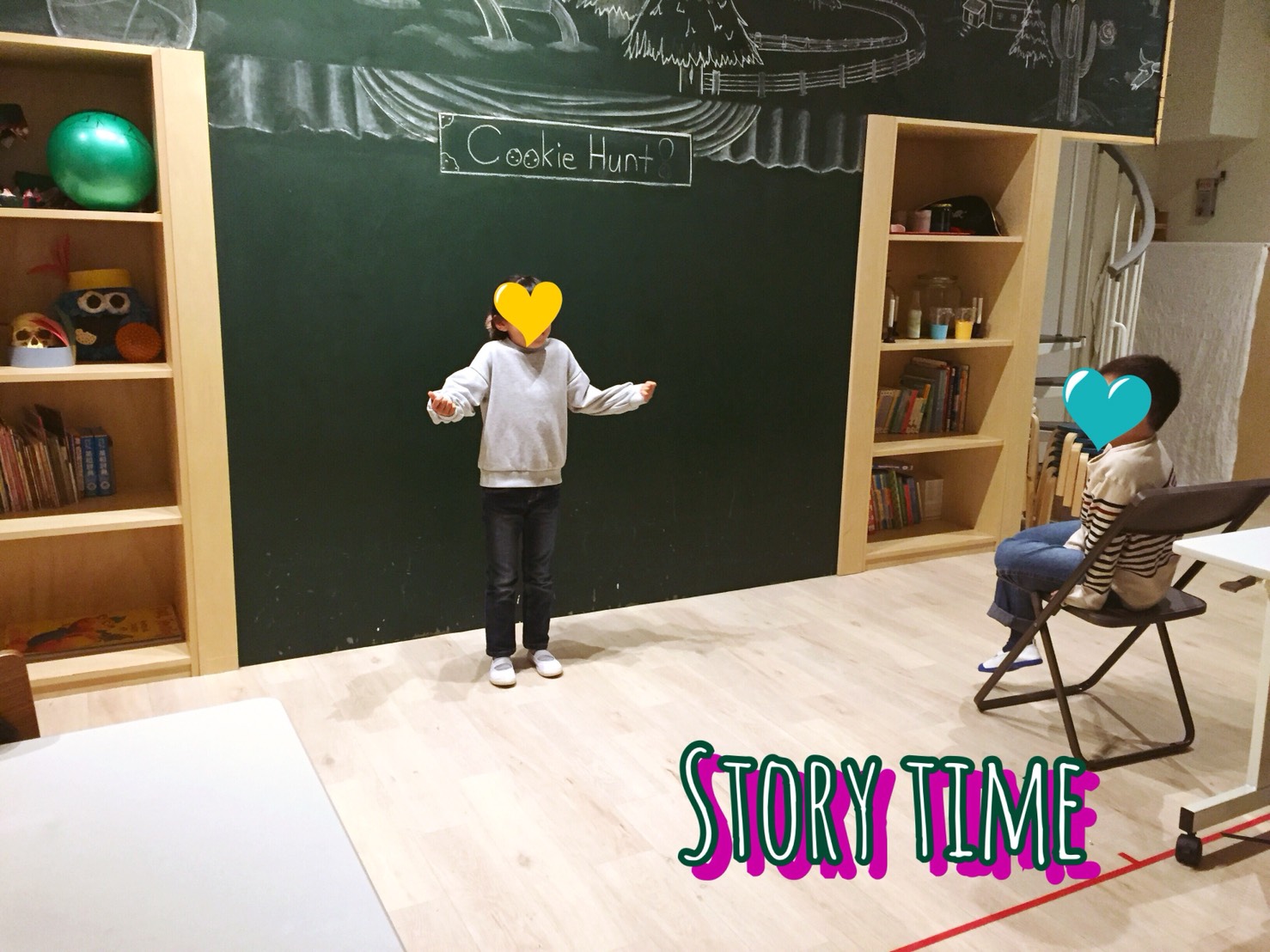 “Dance time”(ダンスの時間)や“What words start with ____?”(〇から始まる単語はなんだ?)や“Story time”(ストーリーの時間)を元気いっぱいにやりました。