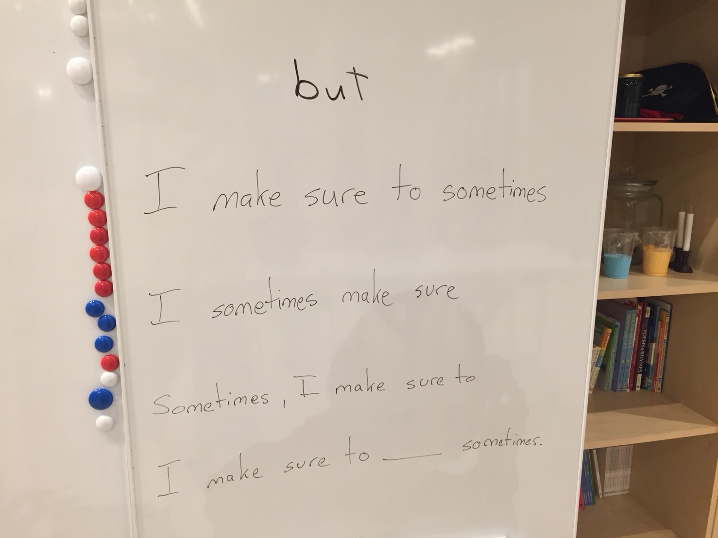 レギュラーコースのみんなが帰った後、7時から8時までは”Make sure”(忘れずに~する)を使ってセンテンスを作る練習、文法と読み書きをやりました。