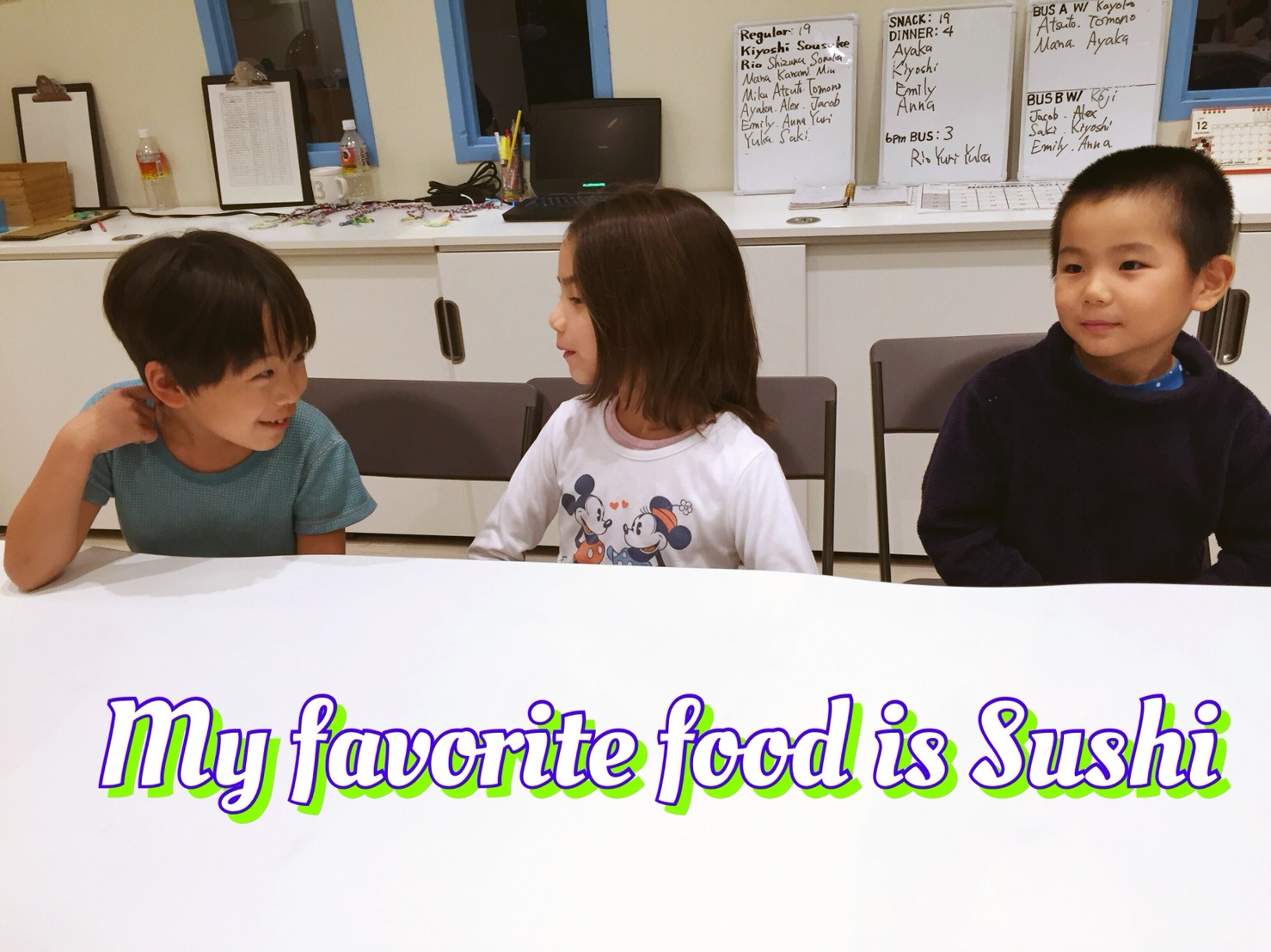 “My favorite food is ____.”(私の一番好きな食べ物は○○です)