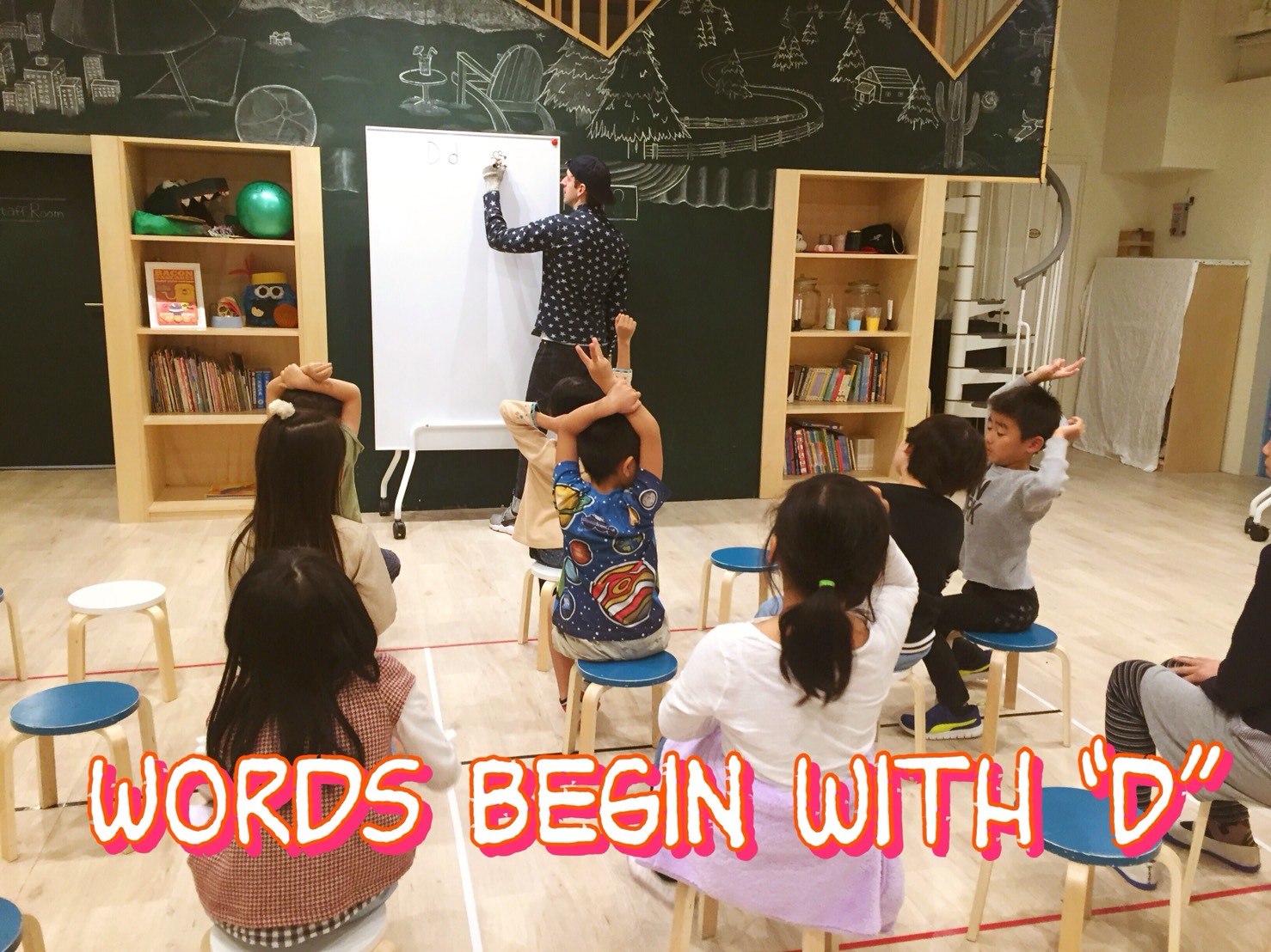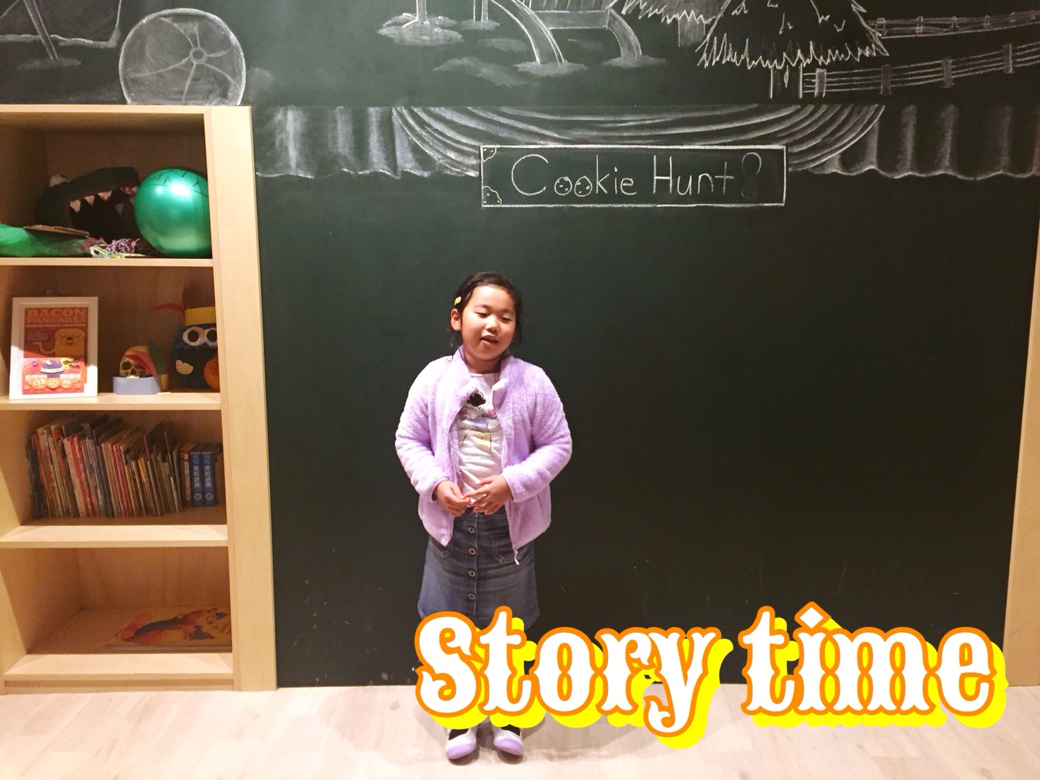 その後は、語彙を増やすための練習で、特定のアルファベットから始まる単語を出し合うゲームといつものようにストーリータイムで“Monster Hunt”の発表を行いました。