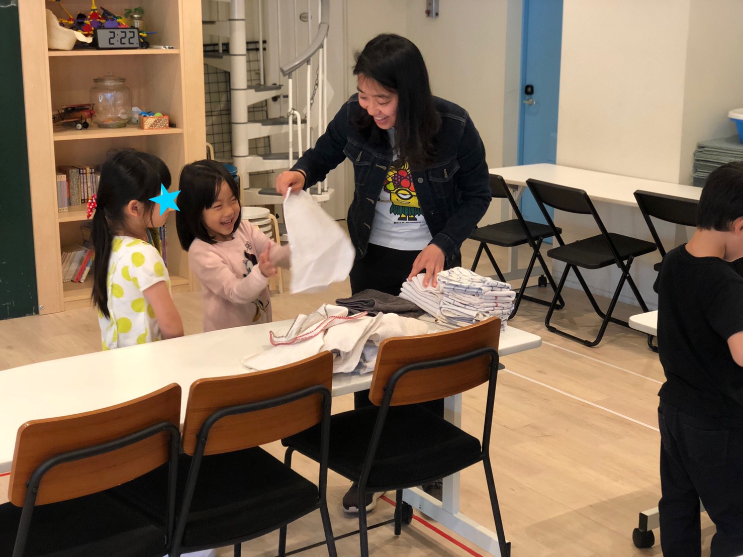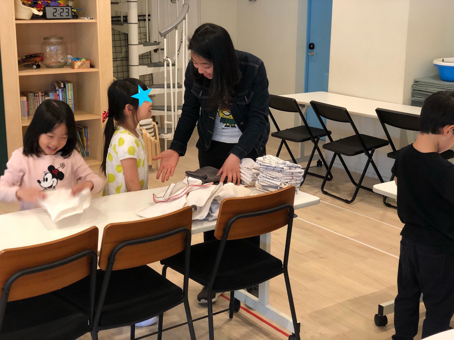 先生のお手本をよく聞いて、わからない部分や言いづらい部分は先生たちに”Help me.”(手伝って)と言って聞いて、先生たちやチームのみんなと一緒にたくさん練習をしています。