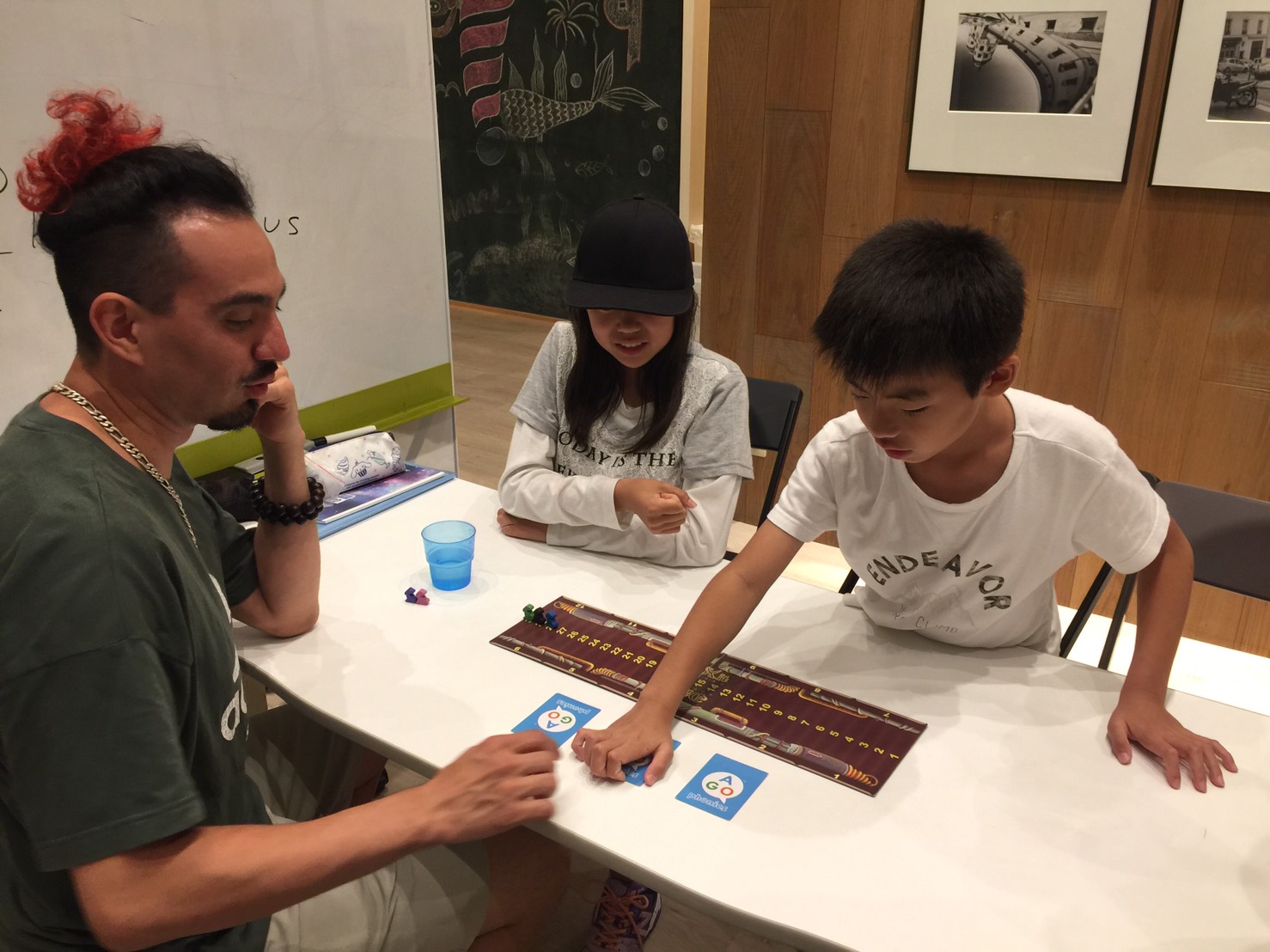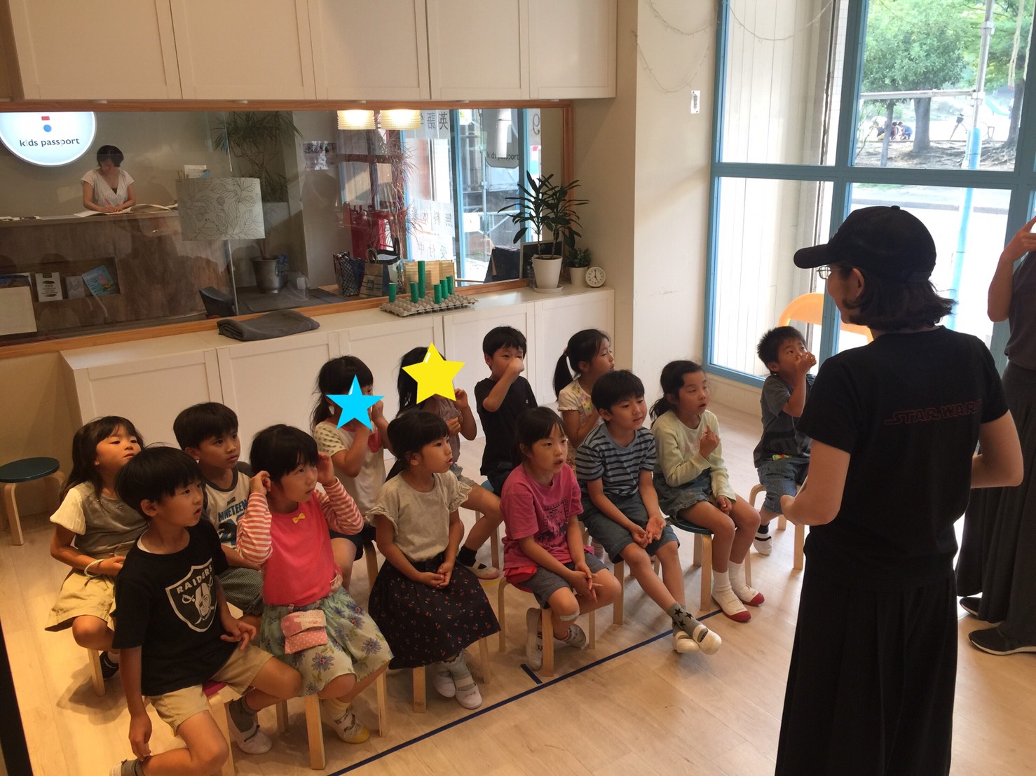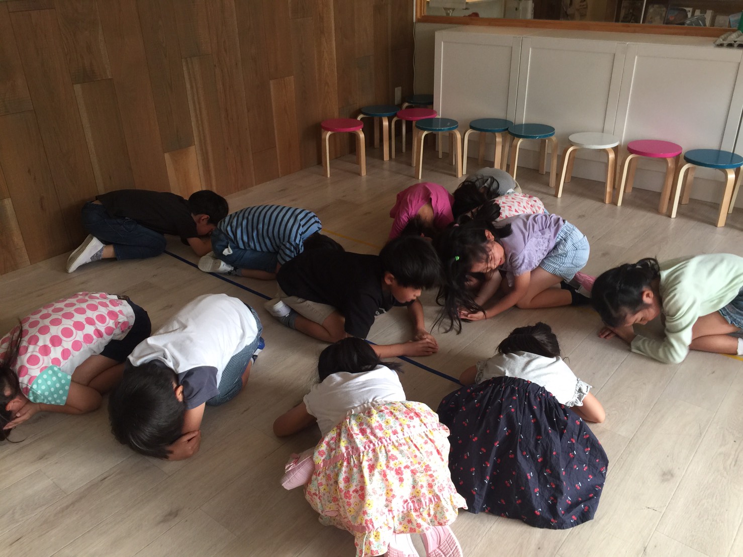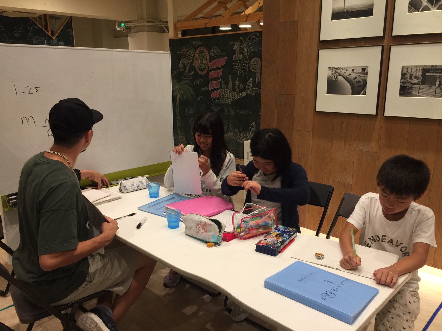 質問の内容や答えのオプションを、お兄さんとお姉さん生徒さんたちが手伝って、小さい生徒さんたちを支えてくれています。
